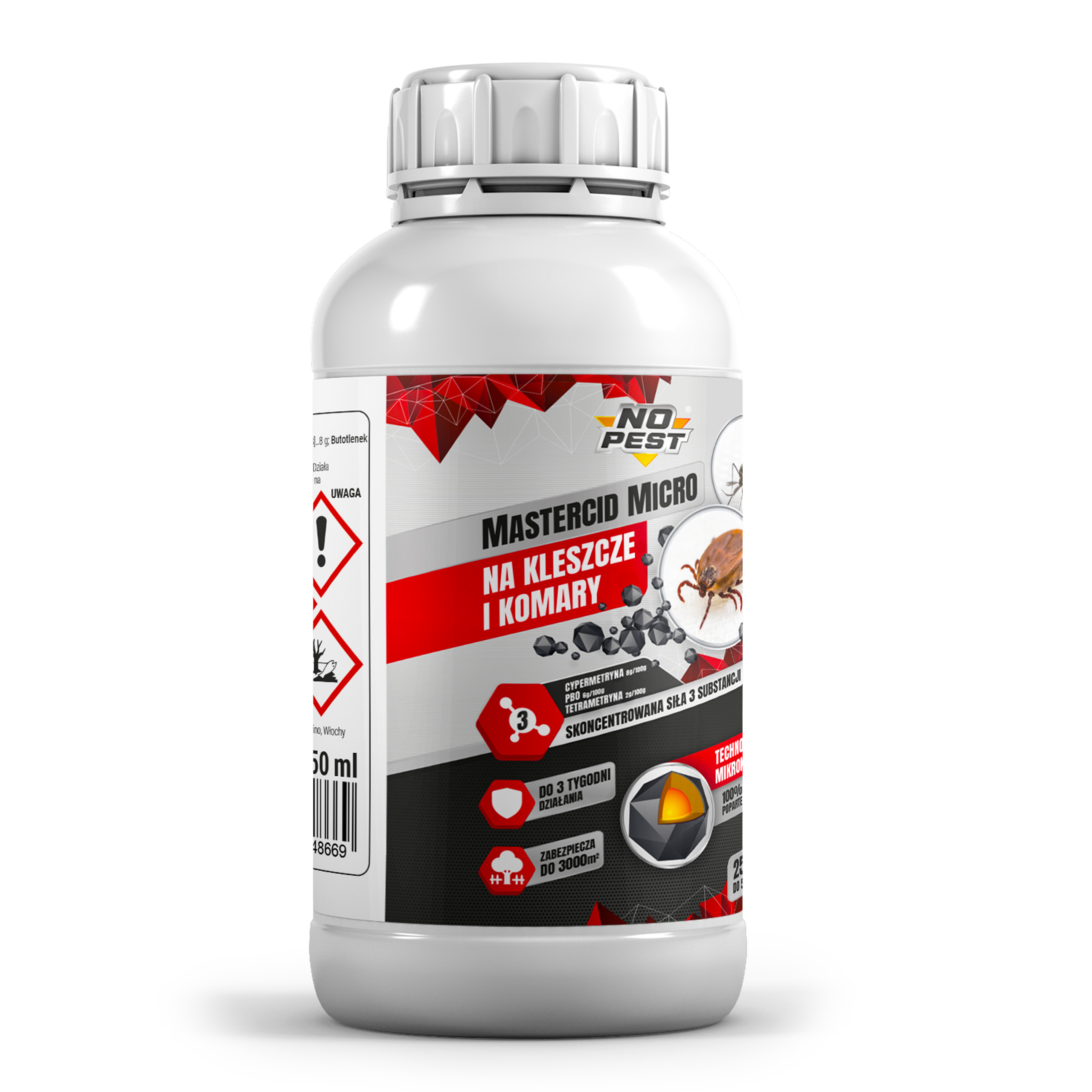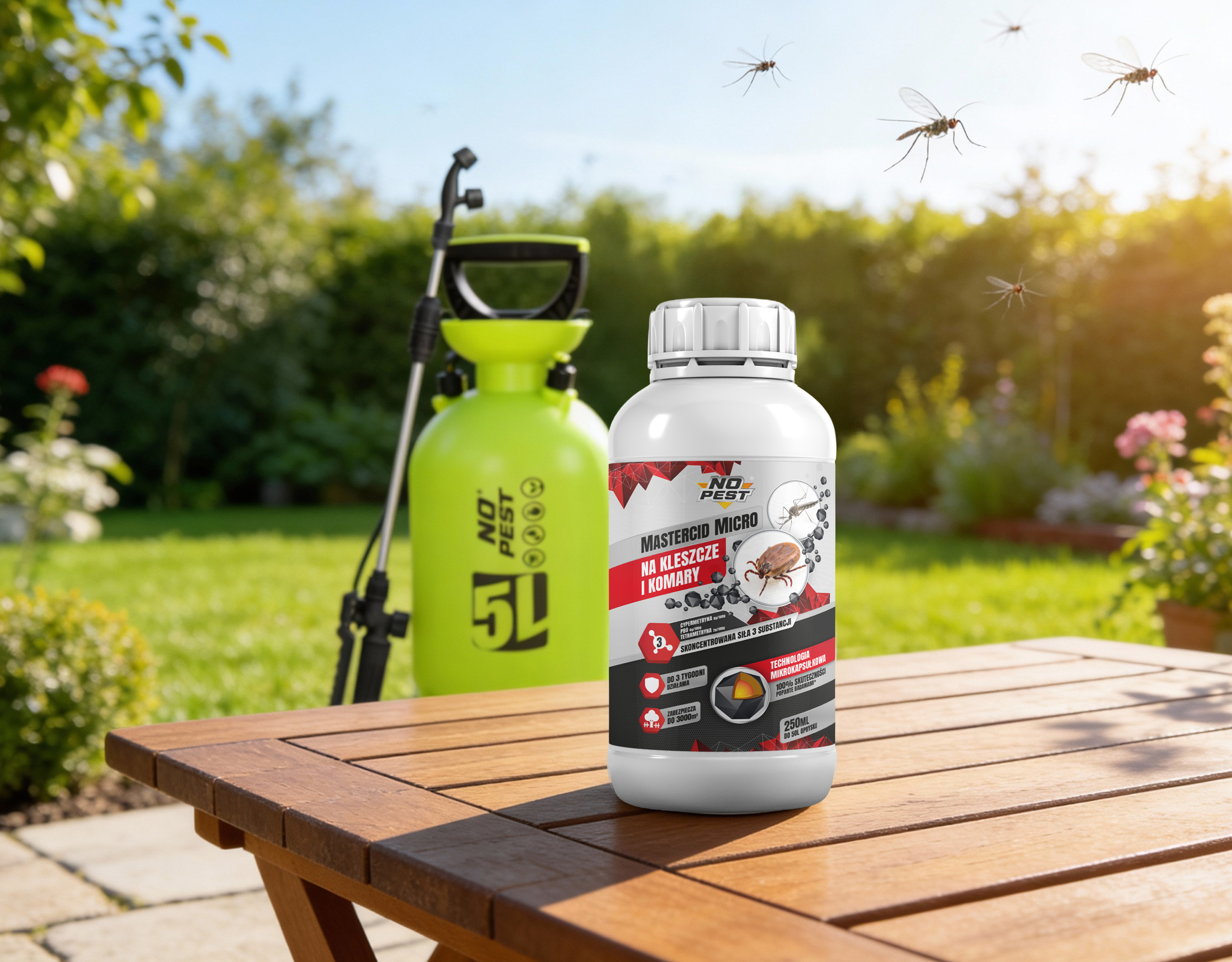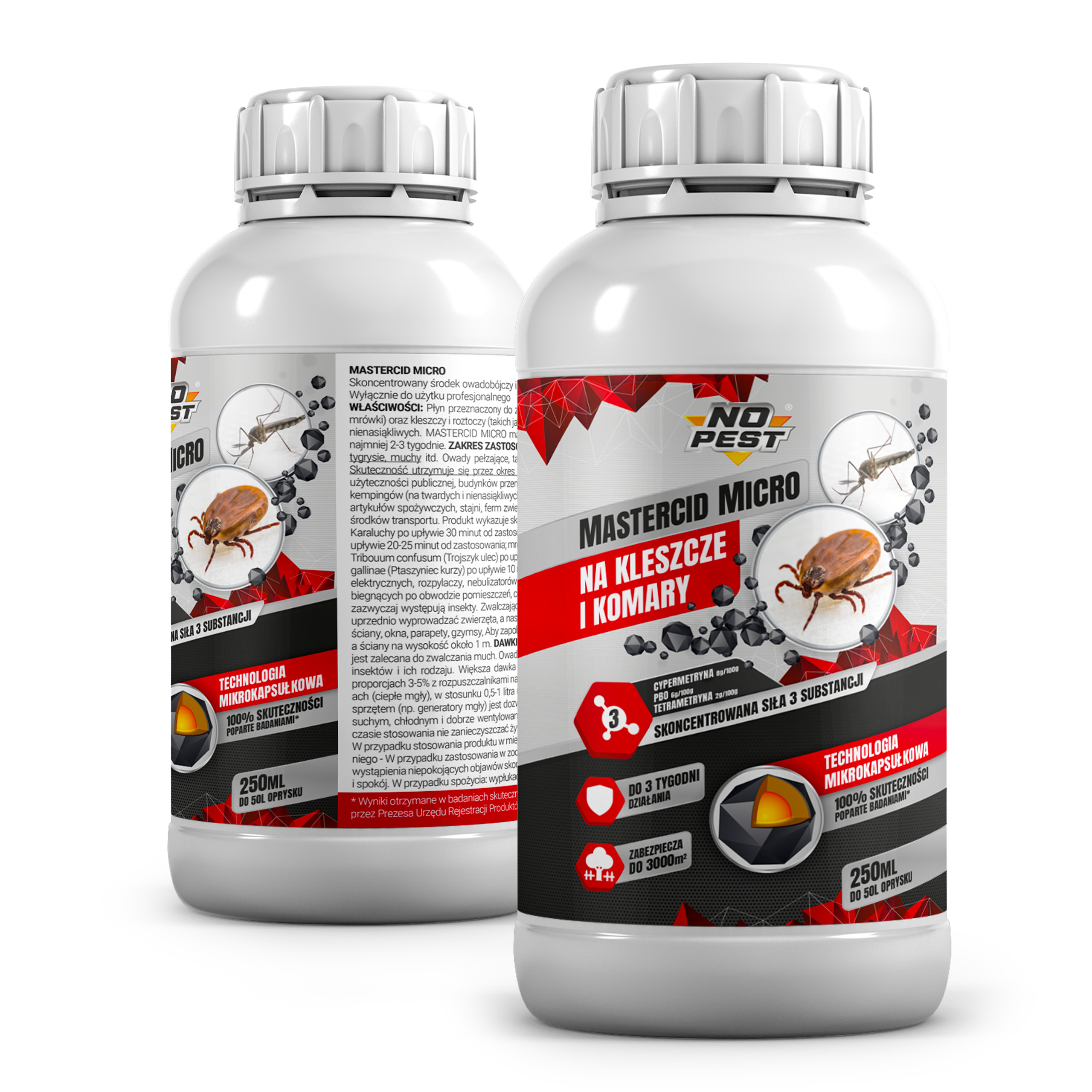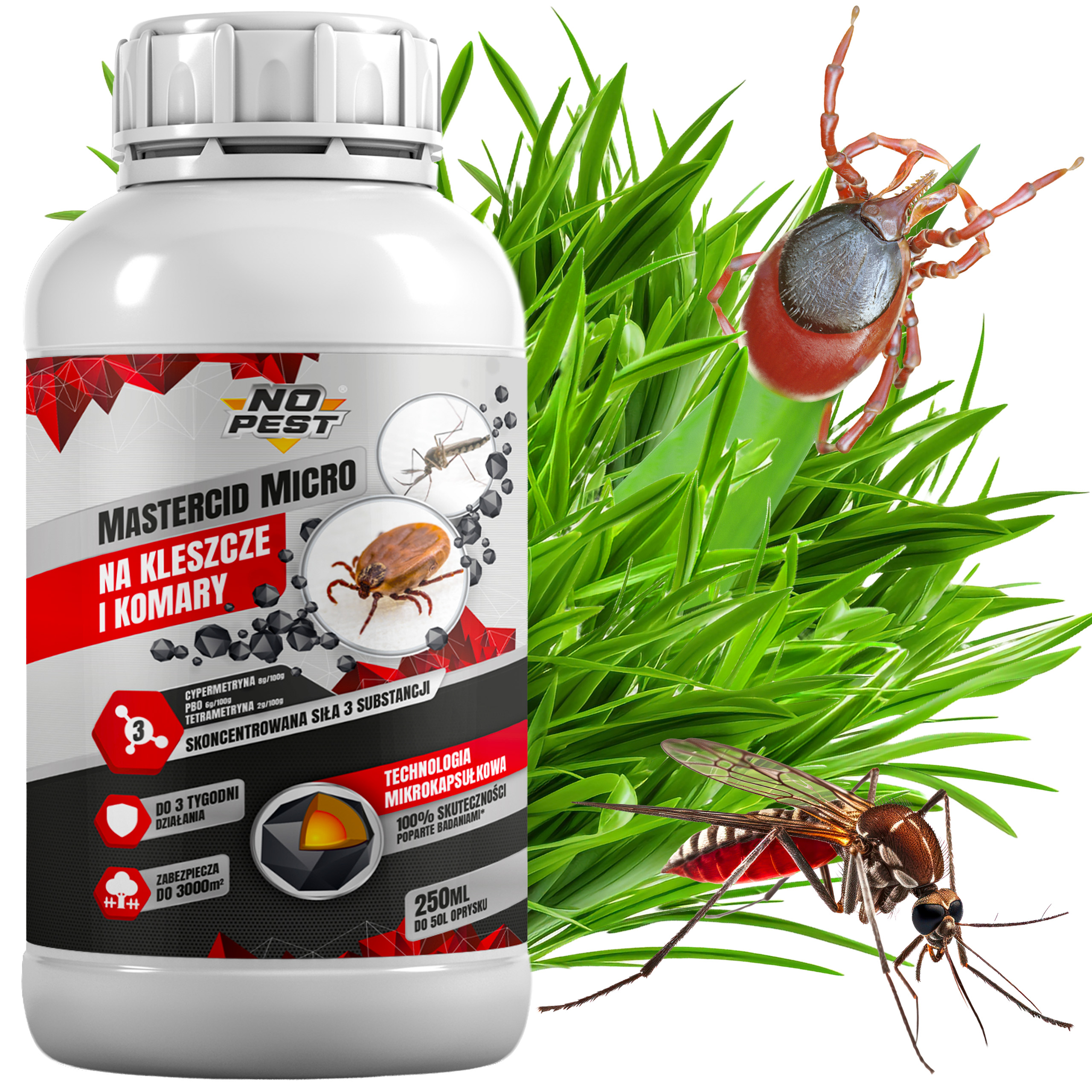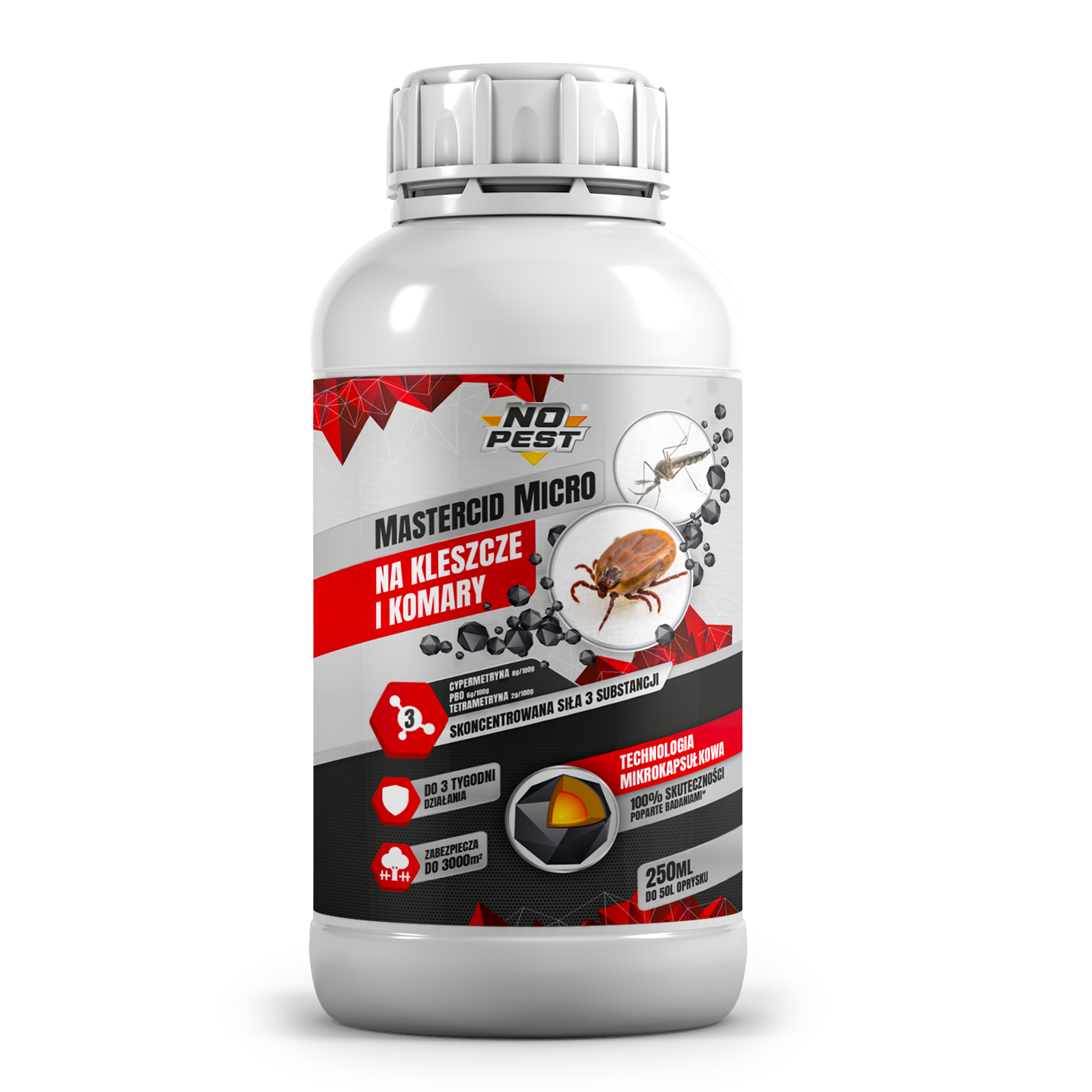 Silny oprysk, preparat na kleszcze komary mikrokapsułkowy Mastercid Micro No Pest® 250ml. Koncentrat do rozcieńczania z wodą.