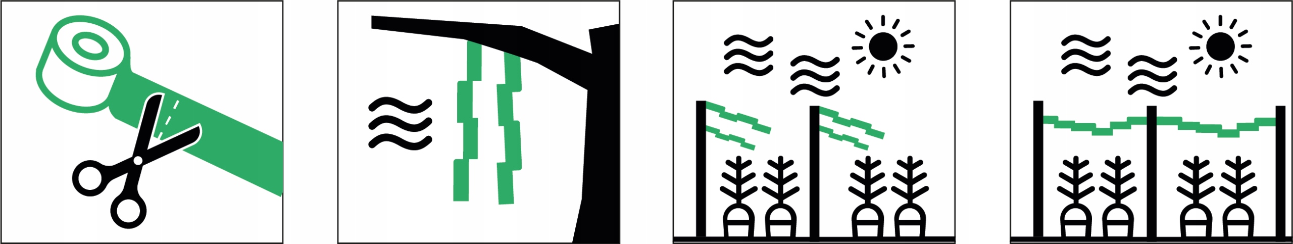Aby taśma działała prawidłowo, należy ją zamocować i napiąć między dwoma stabilnymi punktami w miejscu, które ma być zabezpieczone, pozostawiając odcinki umożliwiające swobodny ruch na wietrze.