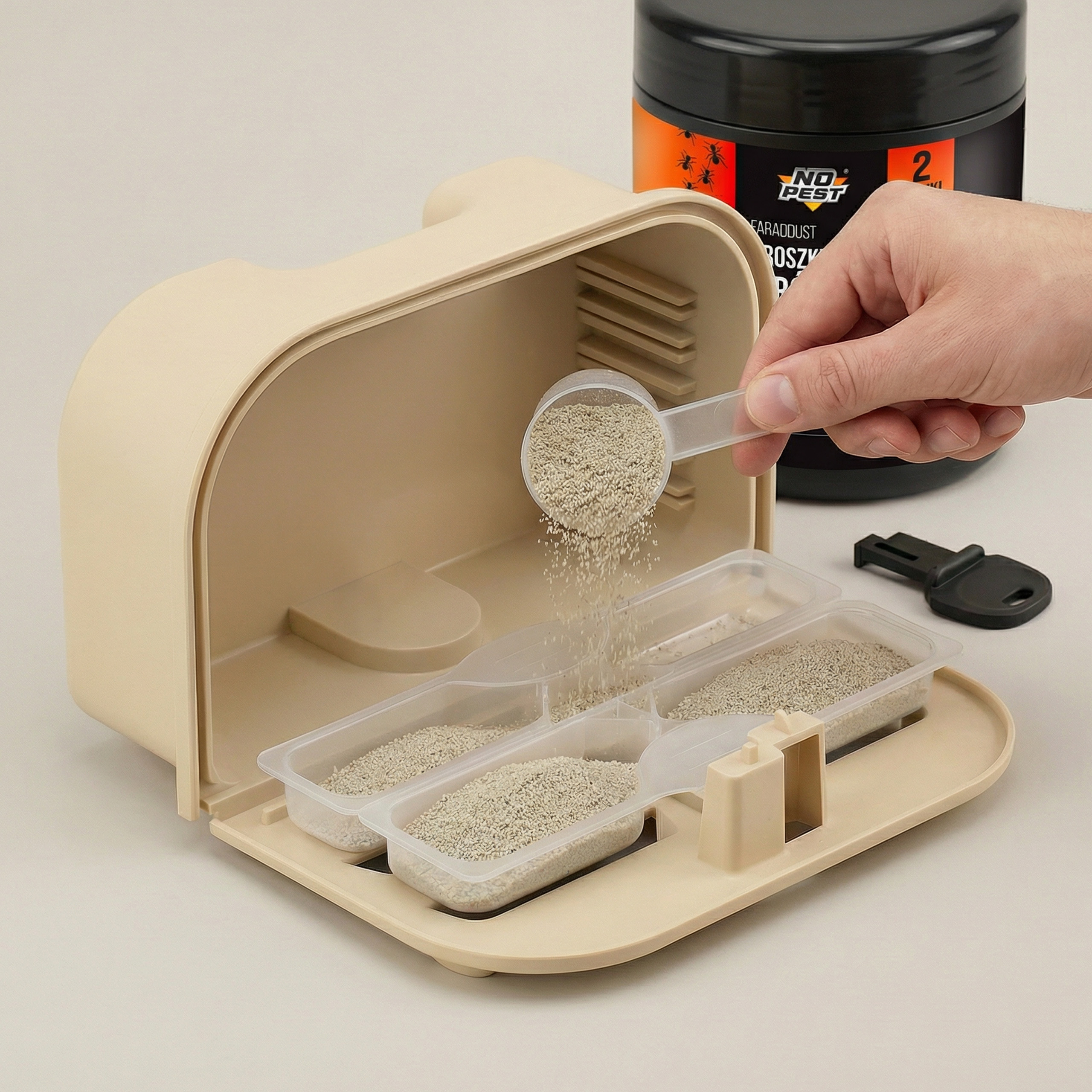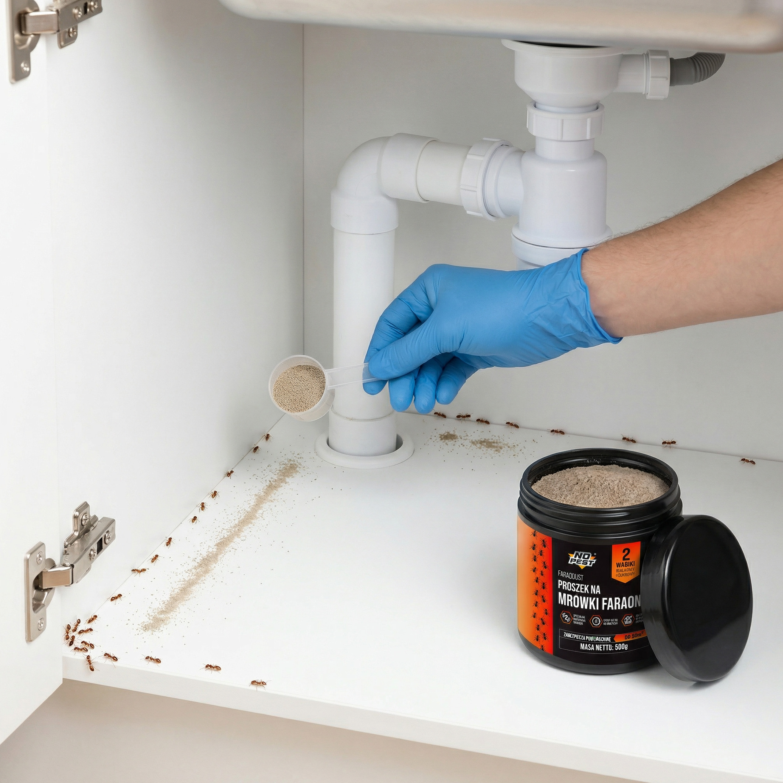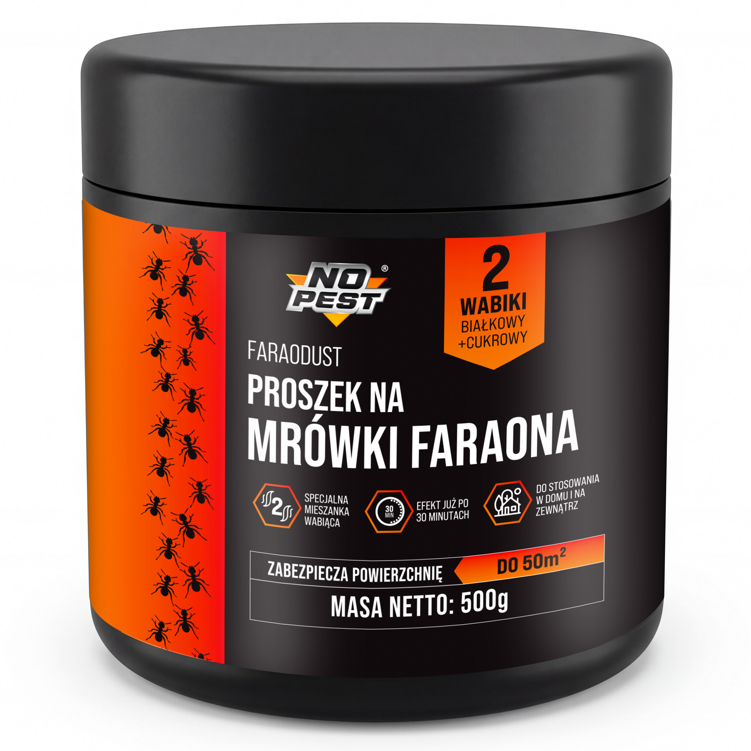 Mrówki faraona to wyjątkowo trudny przeciwnik. Tworzą rozbudowane sieci gniazd, dlatego tradycyjne spraye często powodują jedynie rozproszenie kolonii (tzw. budding). No Pest® Faraodust wykorzystuje zaawansowaną strategię pokarmową. Dzięki zastosowaniu dwóch rodzajów substancji nęcących – białkowej i cukrowej – preparat jest atrakcyjny dla mrówek na każdym etapie rozwoju larwalnego oraz dla królowych.