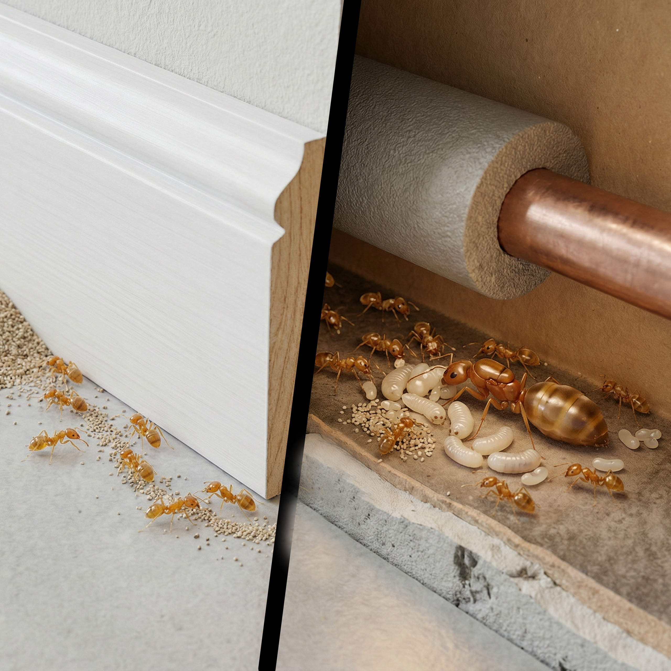 Skuteczna eliminacja mrówek faraona u źródła. Technologia Dual-Bait niszcząca gniazda i królowe.
