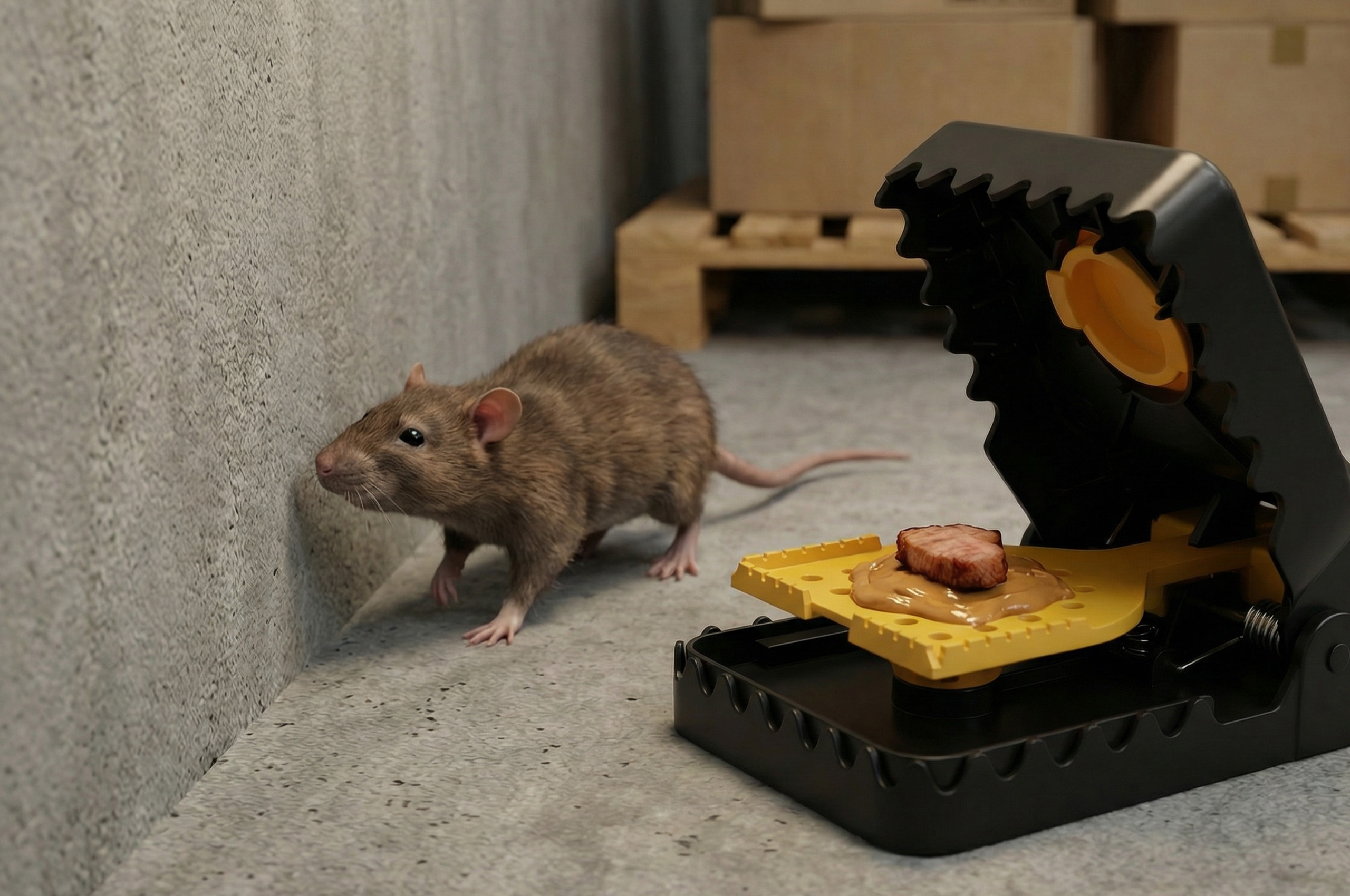 5. Ustaw pułapkę przy ścianie – najlepiej wzdłuż krawędzi, którymi przemieszczają się gryzonie.