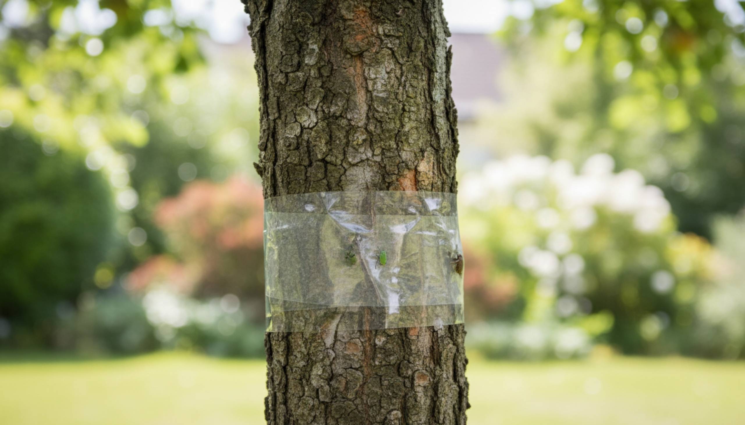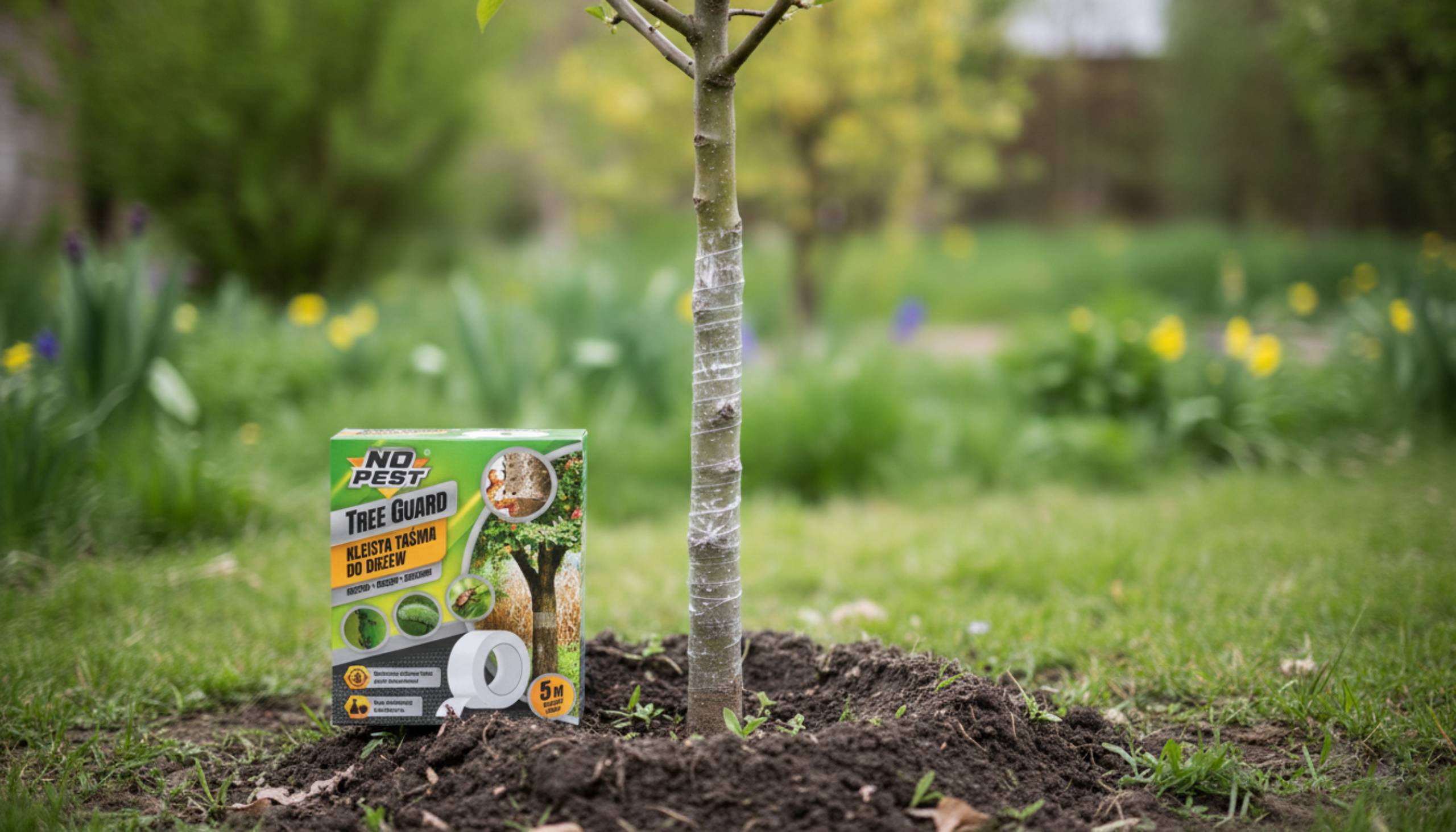 Kleista taśma na drzew No Pest® Tree Guard to praktyczne narzędzie w ochronie roślin przed szkodnikami. Zamocowana na pniu taśma klejąca powstrzymuje dorosłe owady i larwy wędrujące po pniu przed dotarciem do liści zapobiegając przed ich niszczycielskim żerowaniem.