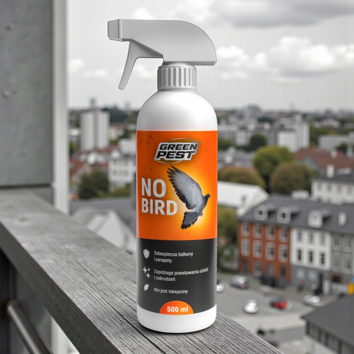 No Bird jest środkiem służącym do zabezpieczania powierzchni przed powstawaniem zanieczyszczeń i plam pochodzących z ptasich odchodów. Środek No Bird to naturalny i nietoksyczny preparat zapobiegający powstawaniu szkód i zabrudzeń wynikających z obecności gołębi, wróbli i innych ptaków.