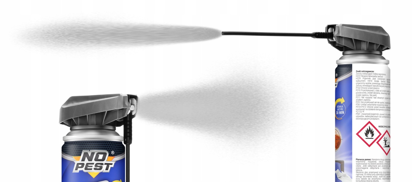 Bomba na pluskwy z długą rurką pozwalającą na użycie np. z innego pomieszczenia zdala od miejsca infestacji. 3sztuki  x 400ml z mocą 3 substancji czynnych to zabójczo skuteczny środek, który zwalczy każdą plagę owadów w domu! Działa na ponad 600m3!