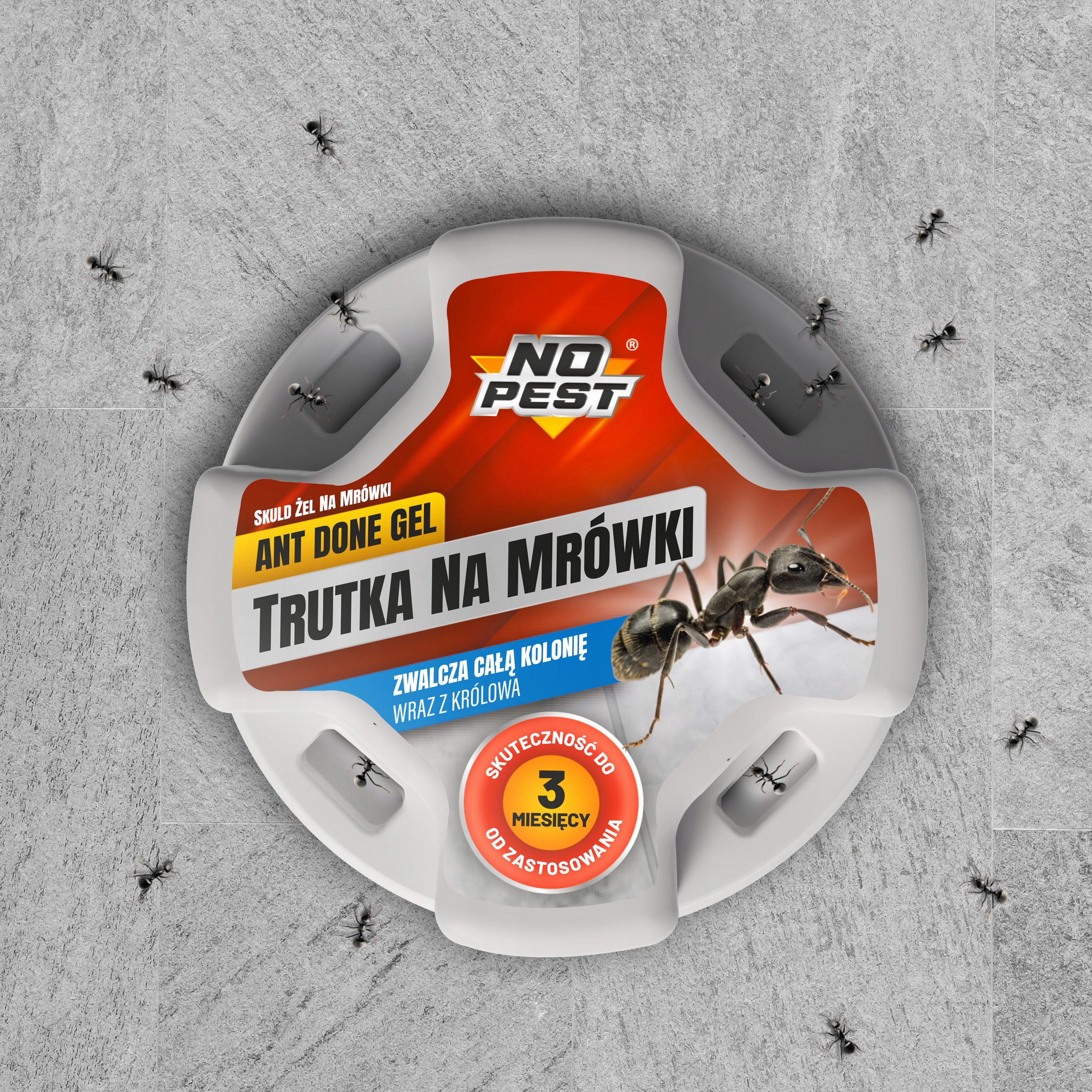 Ant Done Gel No Pest® to żelowa trutka przeznaczona do zwalczania mrówek w miejscach ich aktywności zarówno wewnątrz pomieszczeń, jak i wokół budynków. Dzięki zastosowanym koformulantom produkt sprawdza się w różnych warunkach: w kuchniach, spiżarniach, garażach, a także na balkonach czy tarasach.