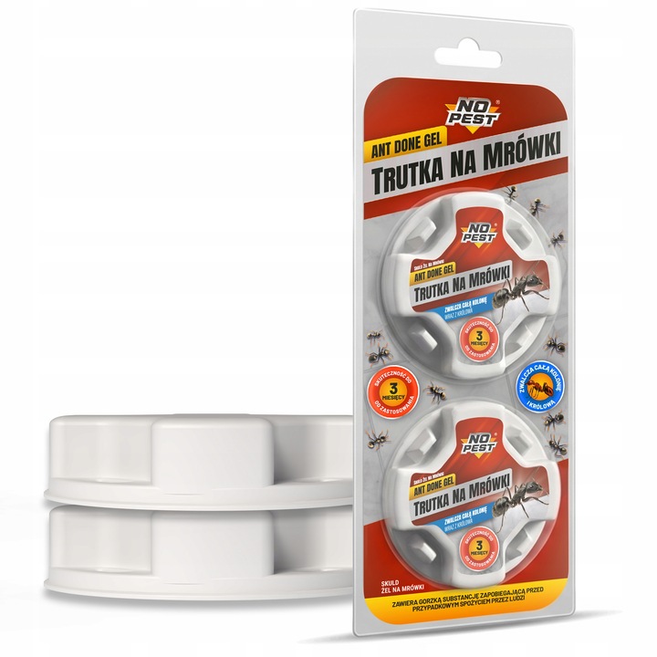 Trutka na mrówki Ant Done Gel No Pest® to preparat w formie żelu, gotowy do użycia zaraz po aktywacji, umieszczony w estetycznym, dyskretnym pojemniku. Produkt zawiera odpowiednio dobrane składniki, w tym łatwo dostępne cukry, które stanowią atrakcyjne źródło pożywienia dla mrówek.