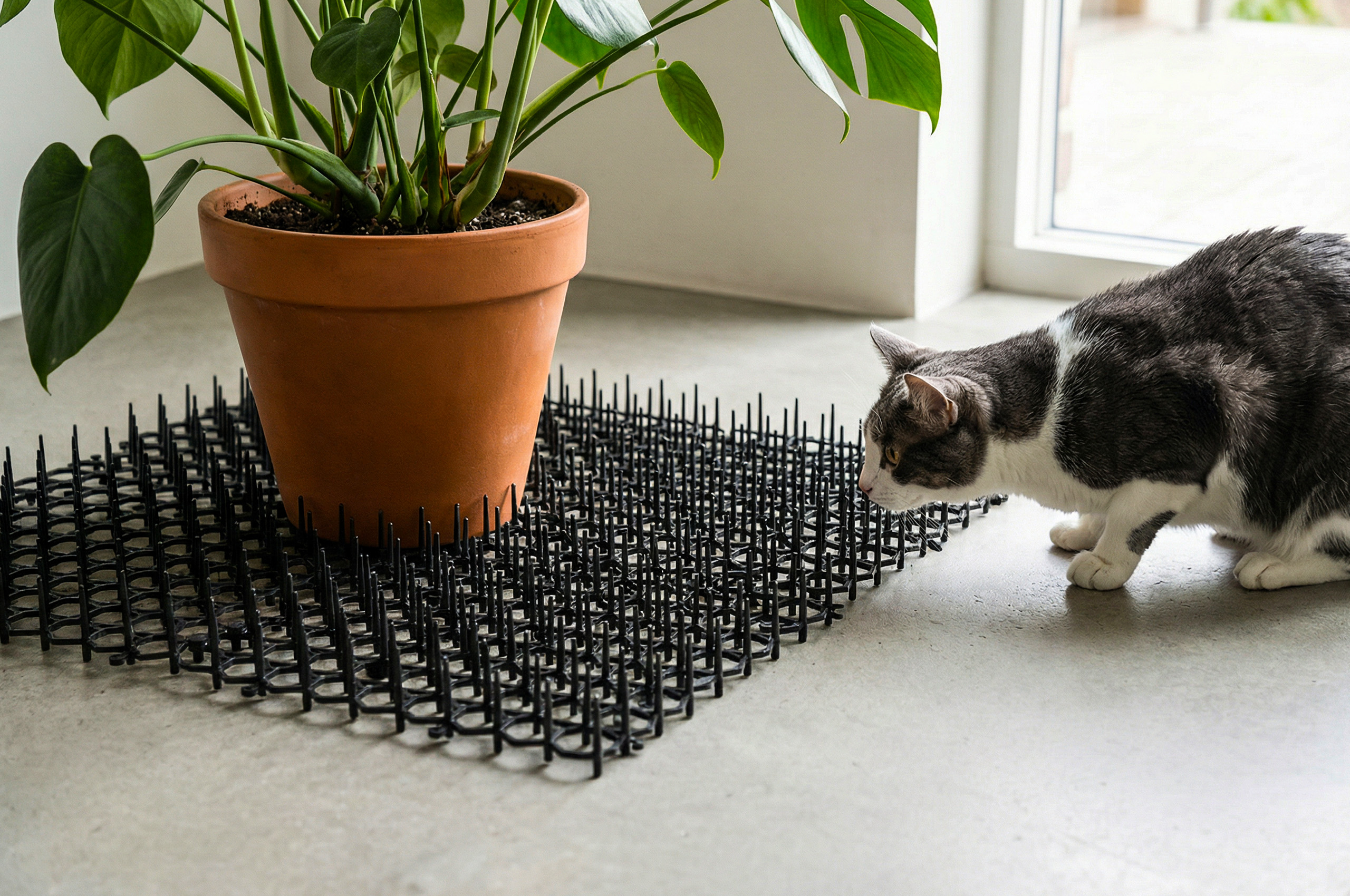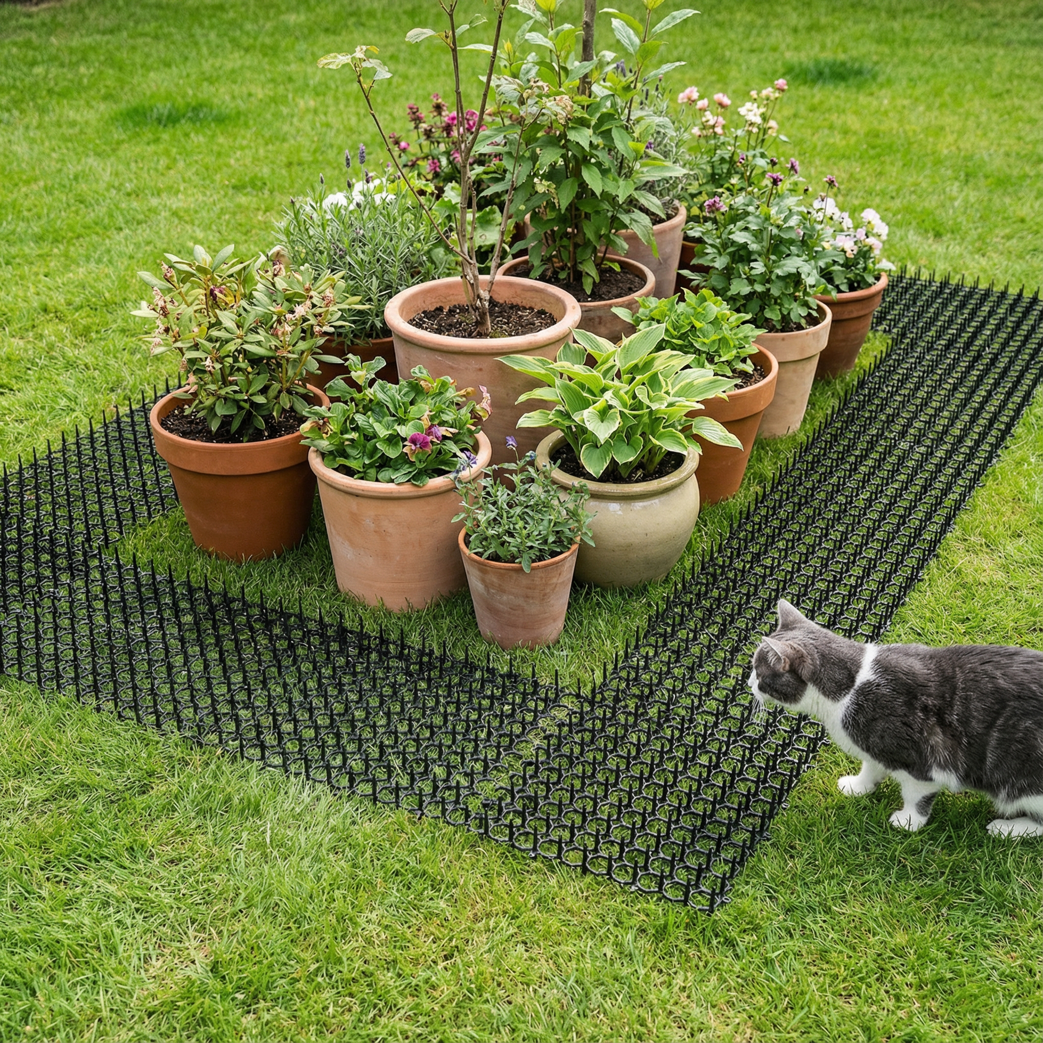Co zrobić żeby pies nie wchodził na wypielęgnowane grządki? Co na koty sąsiada, które wciąż przychodzą do Twojego ogrodu? Może pies lub kot wskakują na sofę lub meble i chcesz ich tego oduczyć? Działanie maty opiera się na prostej, ale funkcjonalnej konstrukcji z kolcami, które tworzą niestabilne i niewygodne podłoże dla zwierząt. Taka powierzchnia utrudnia chodzenie, siadanie oraz kopanie, przez co zwierzęta przestają traktować zabezpieczone miejsce jako atrakcyjne. Wykorzystane tworzywo sztuczne cechuje się wysoką trwałością i odpornością na warunki atmosferyczne, co pozwala na długotrwałe użytkowanie na zewnątrz. Modułowa budowa umożliwia łączenie elementów oraz ich przycinanie, dzięki czemu matę można łatwo dopasować do grządek, murków, parapetów, balkonów i innych nieregularnych powierzchni.