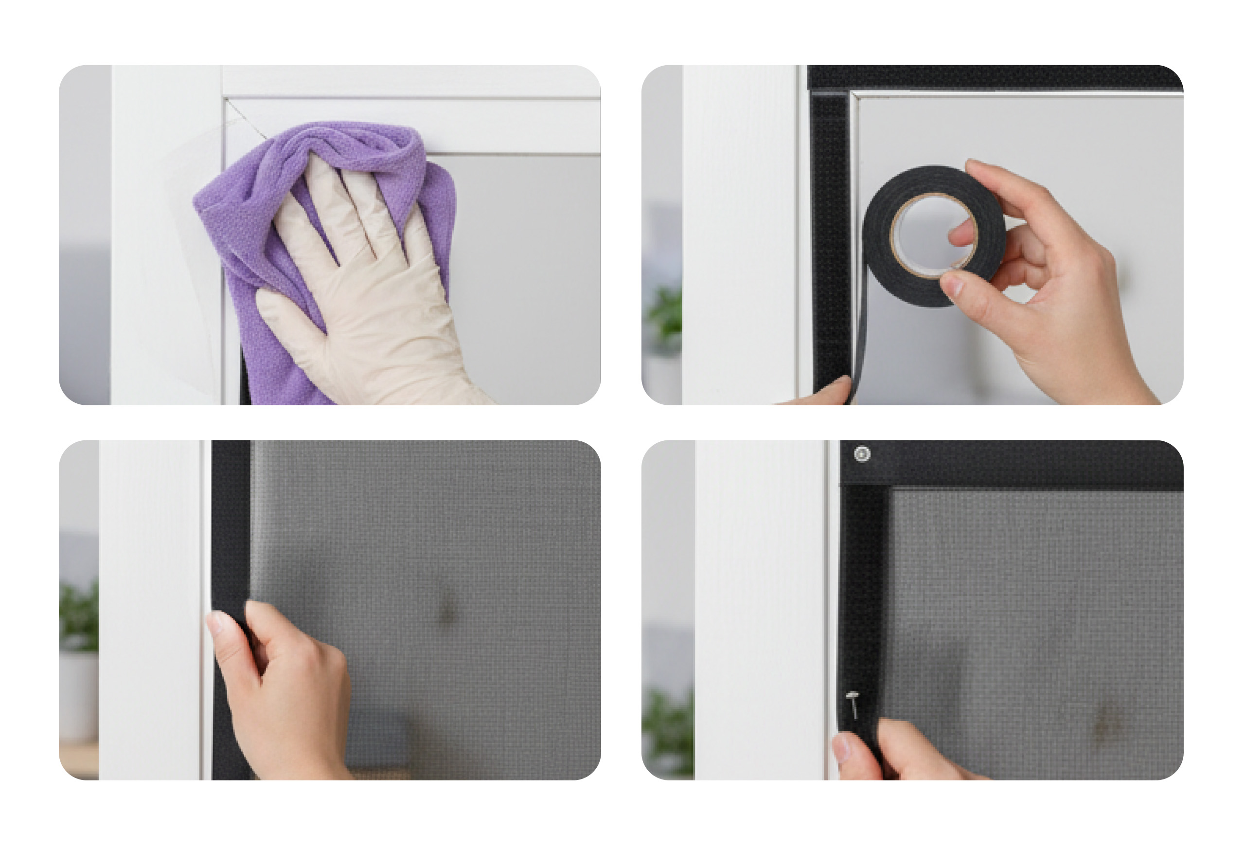 3. Przymocuj moskitierę, starannie dociskając siatkę do rzepów.