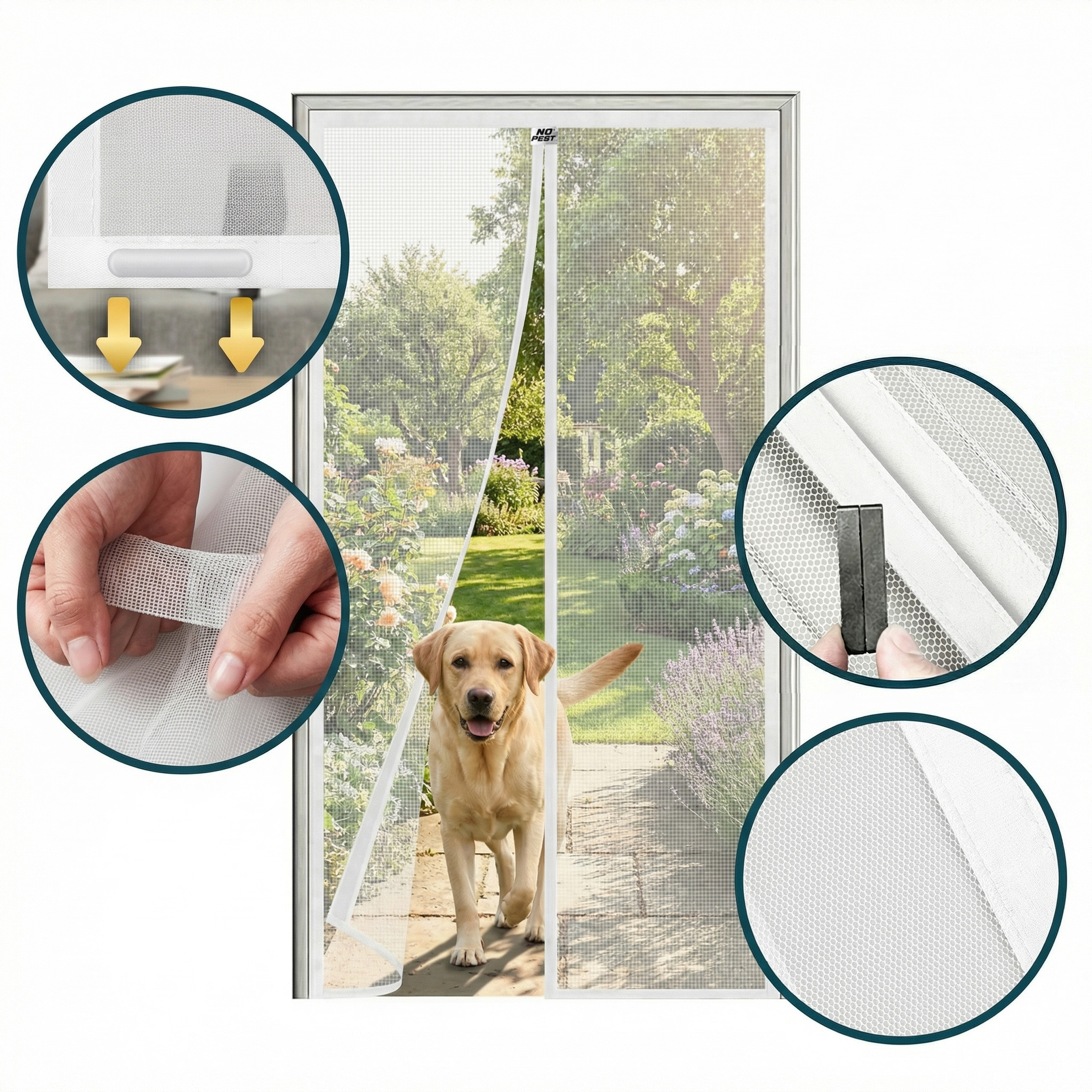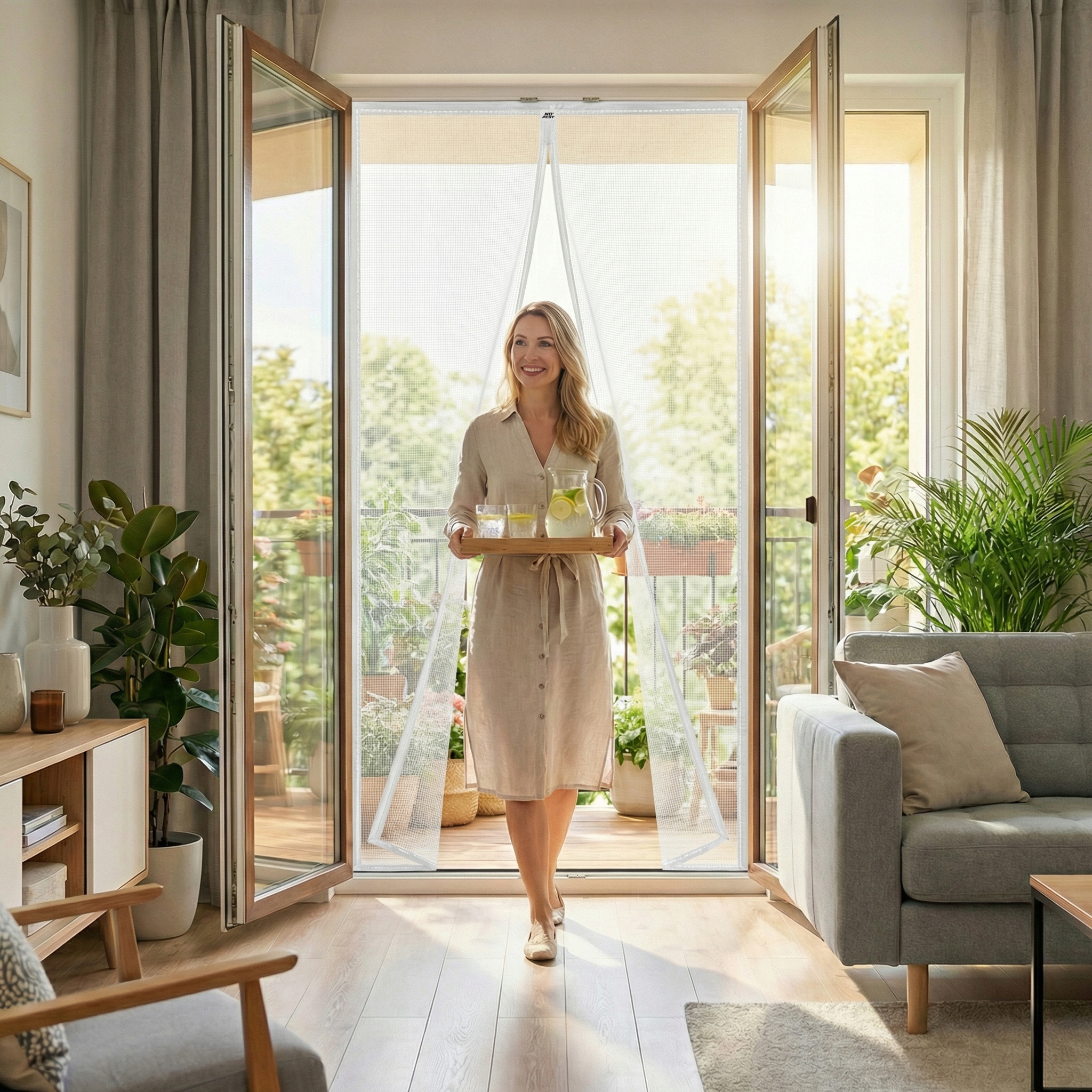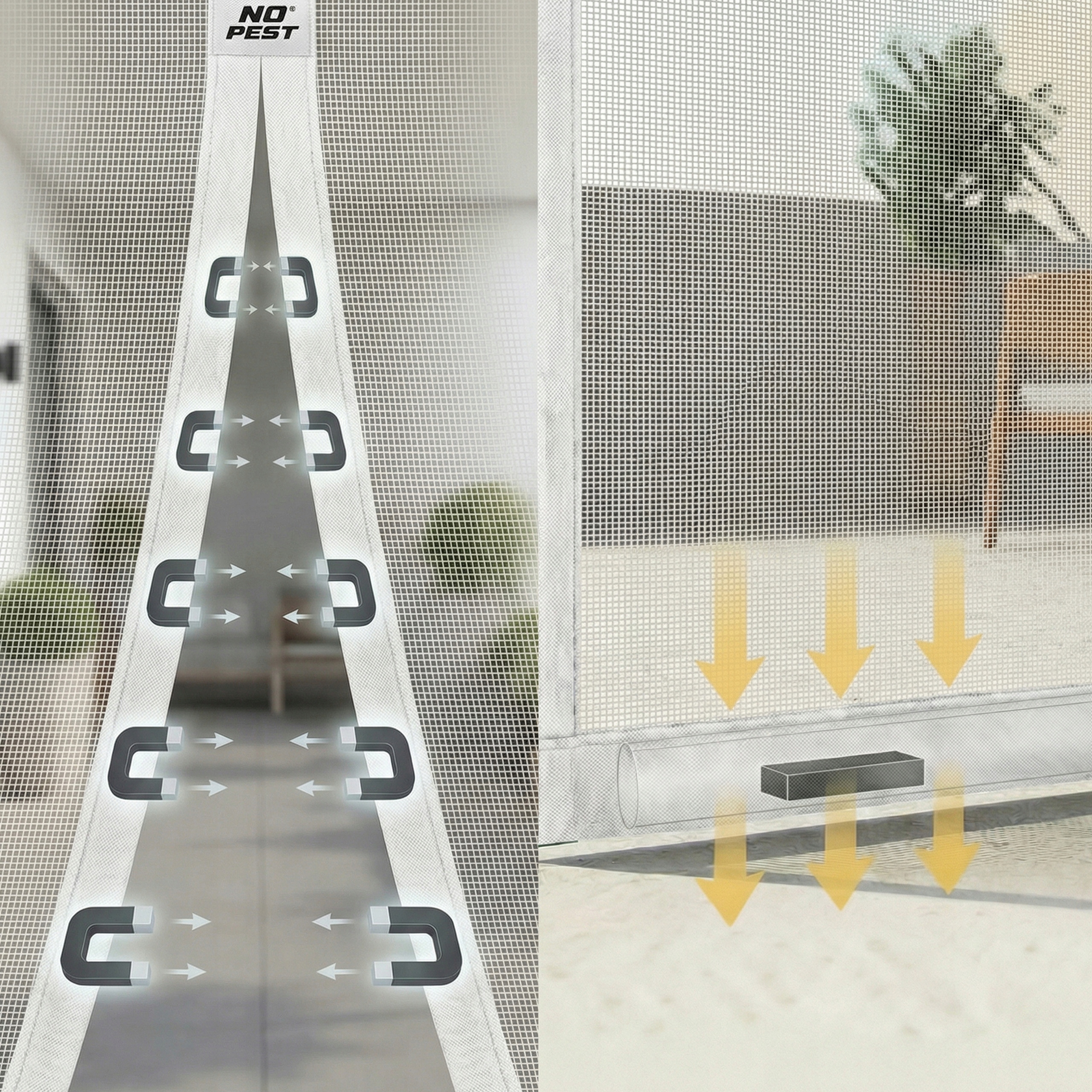 Biała moskitiera magnetyczna samozamykająca się do drzwi balkonowych No Pest® Silent Screen przeznaczona jest do montażu na drzwi balkonowe i tarasowe o maksymalnych wymiarach 100x220 cm. Dwuskrzydłowa konstrukcja z wszytymi magnesami i dodatkowymi obciążnikami umożliwia swobodne przechodzenie przy jednoczesnym ograniczeniu przedostawania się owadów do wnętrza.