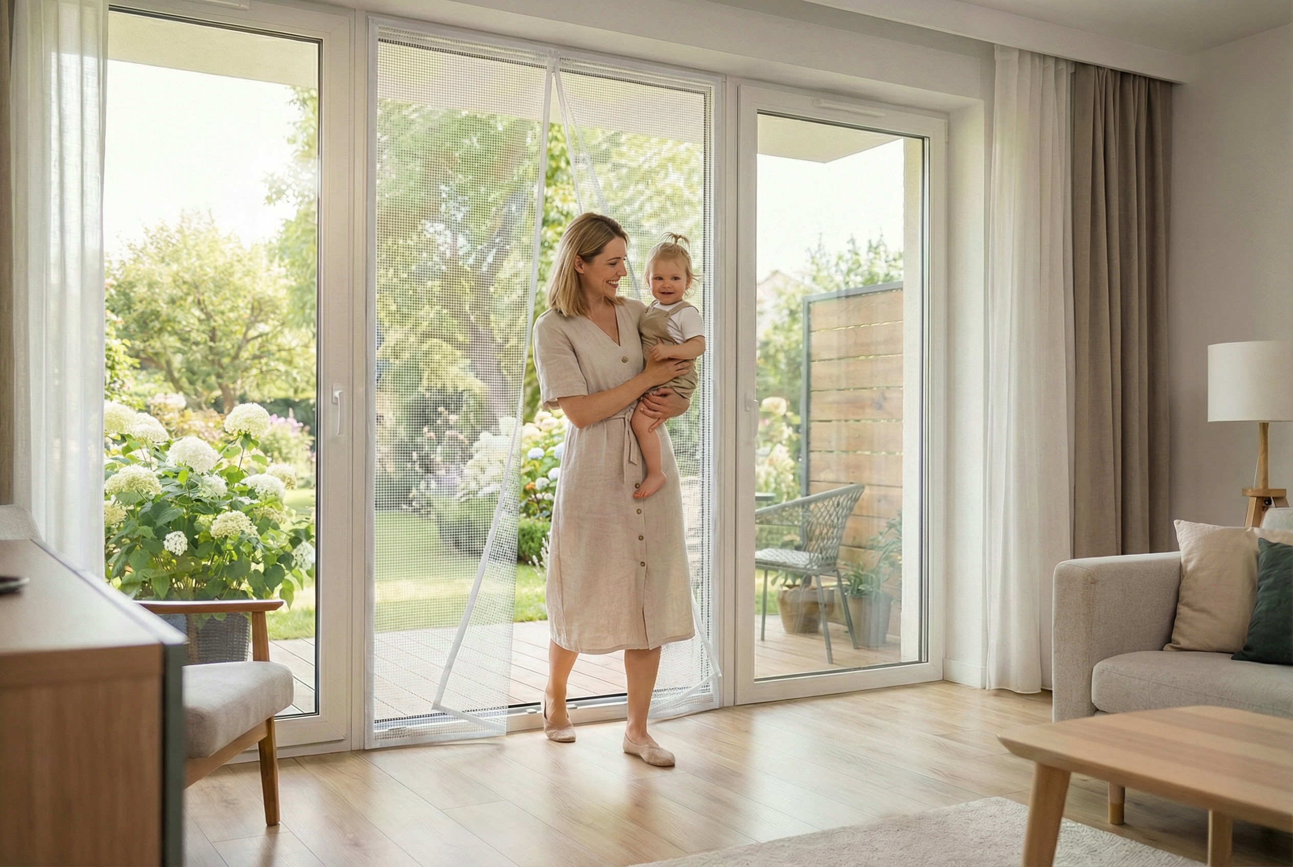 Moskitiera Silent Screen No Pest® łączy prostą konstrukcję z funkcjonalnymi rozwiązaniami, które ułatwiają codzienne korzystanie z drzwi balkonowych i tarasowych.