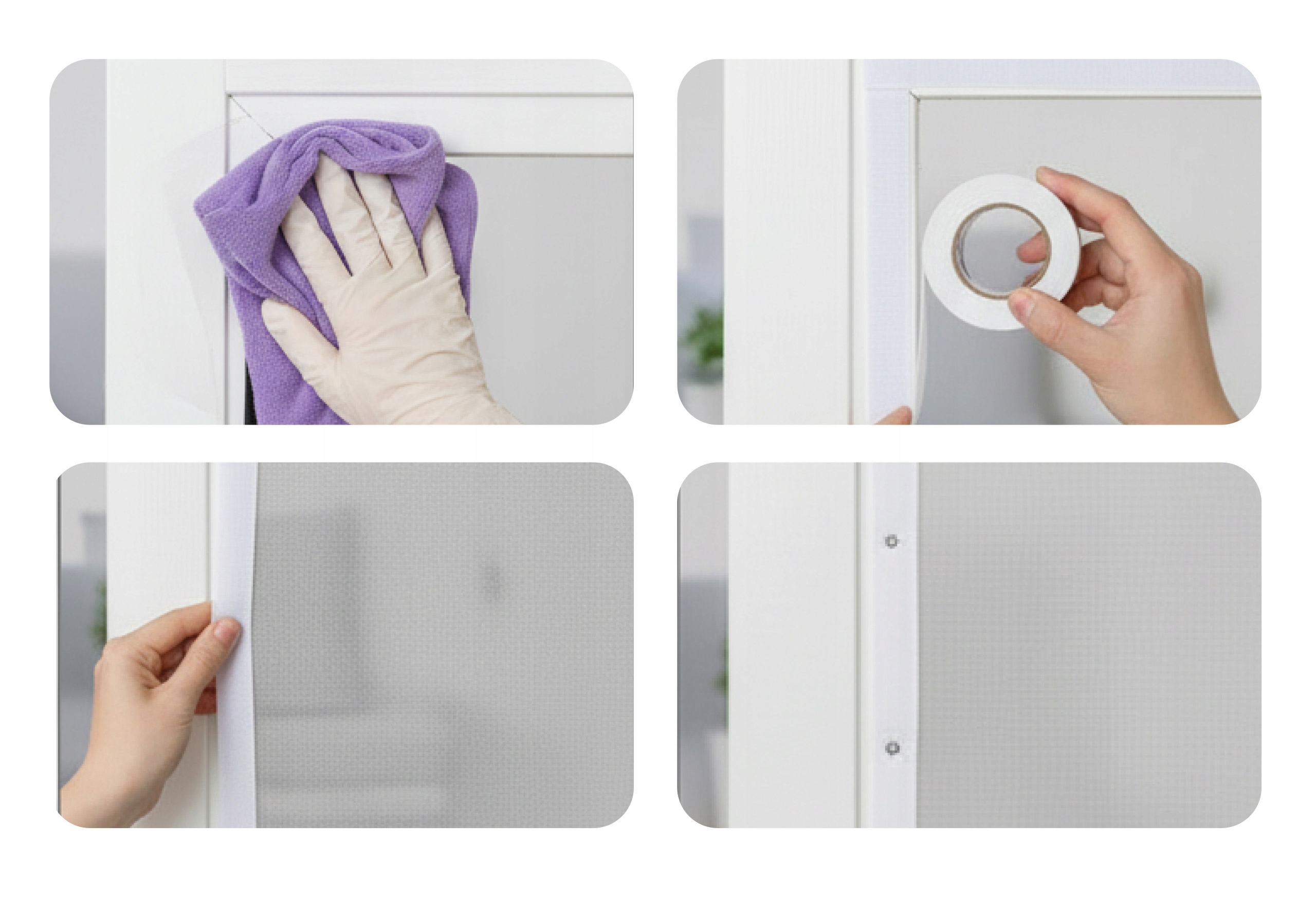 3. Przymocuj moskitierę, starannie dociskając siatkę do rzepów.