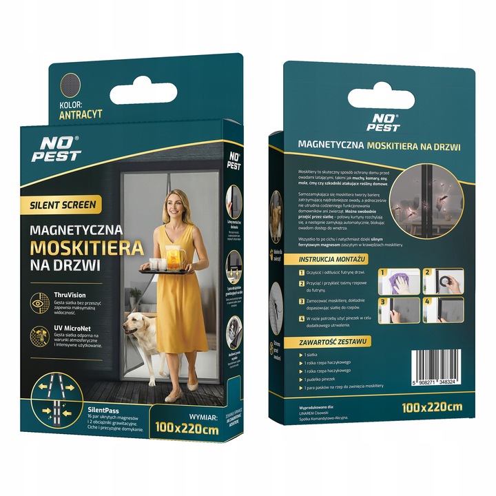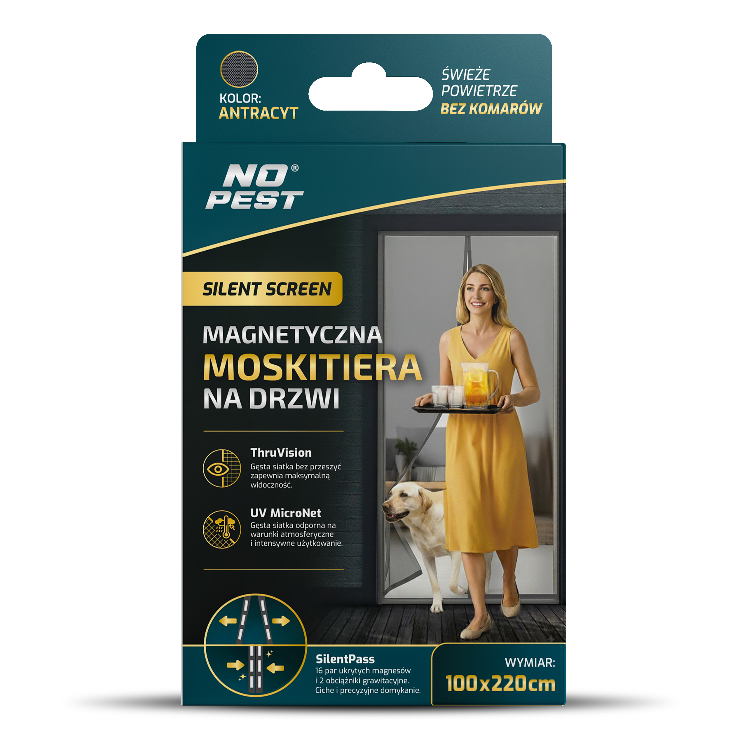 Moskitiera magnetyczna Silent Screen No Pest® przeznaczona jest do stosowania w otworach drzwiowych prowadzących na balkon, taras, patio, do ogrodu lub na werandę. Sprawdza się również w domkach letniskowych, altanach, przyczepach kempingowych oraz w pomieszczeniach gospodarczych. Uniwersalny rozmiar umożliwia dopasowanie do większości standardowych futryn drzwiowych.