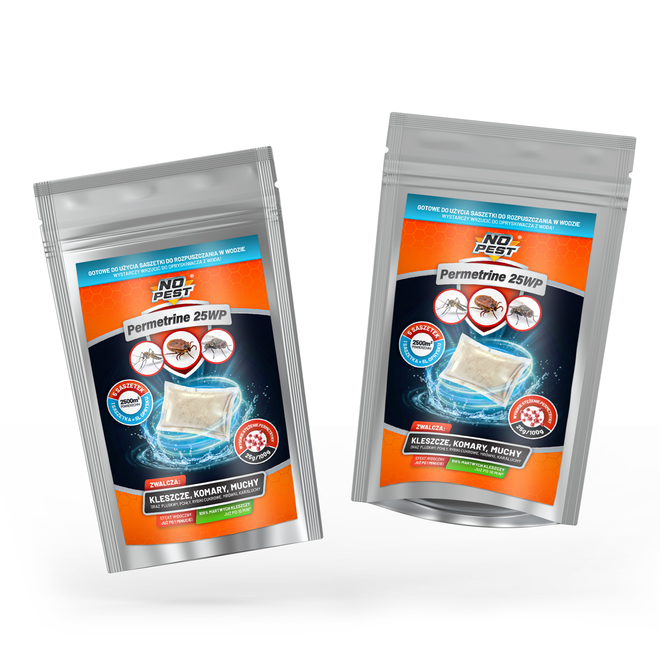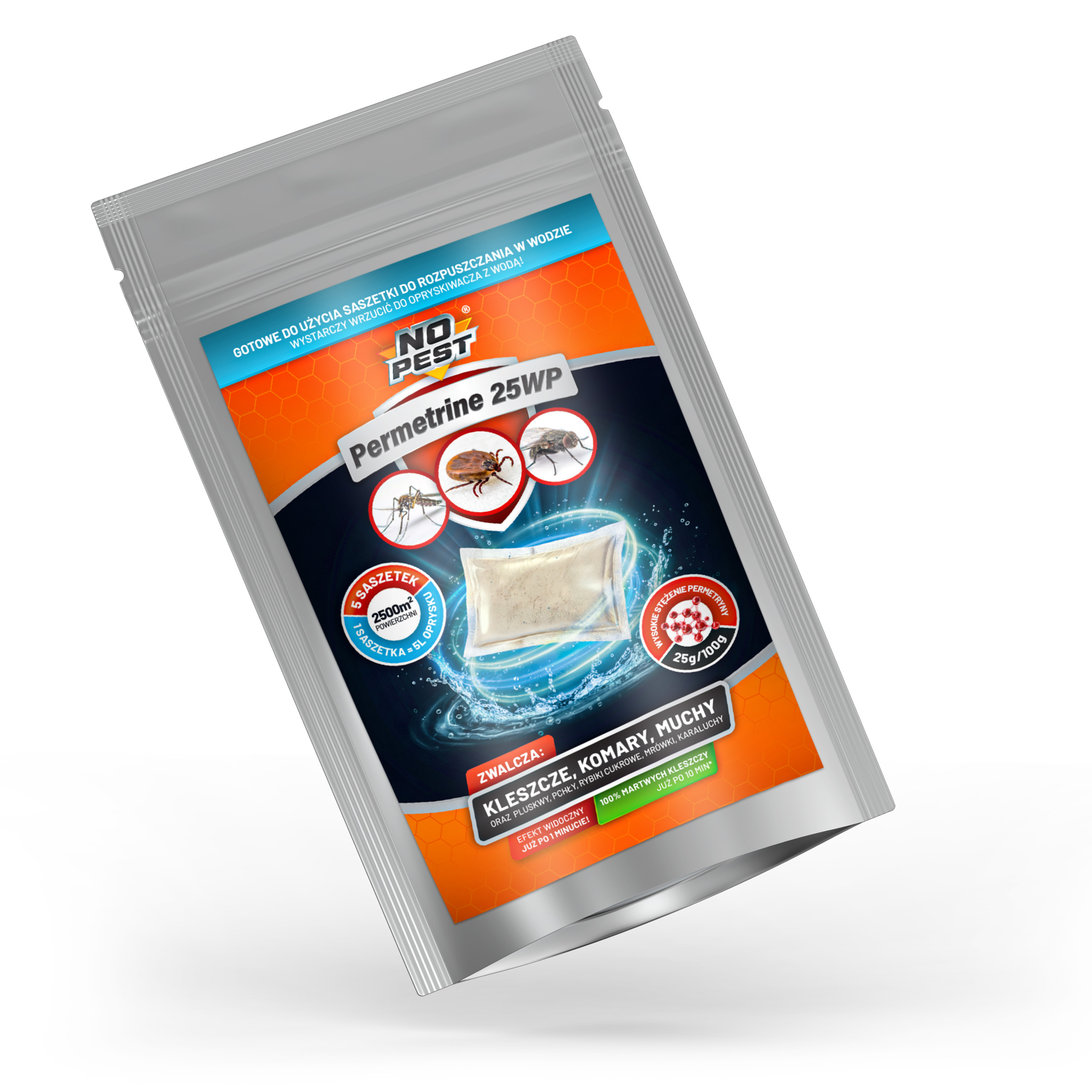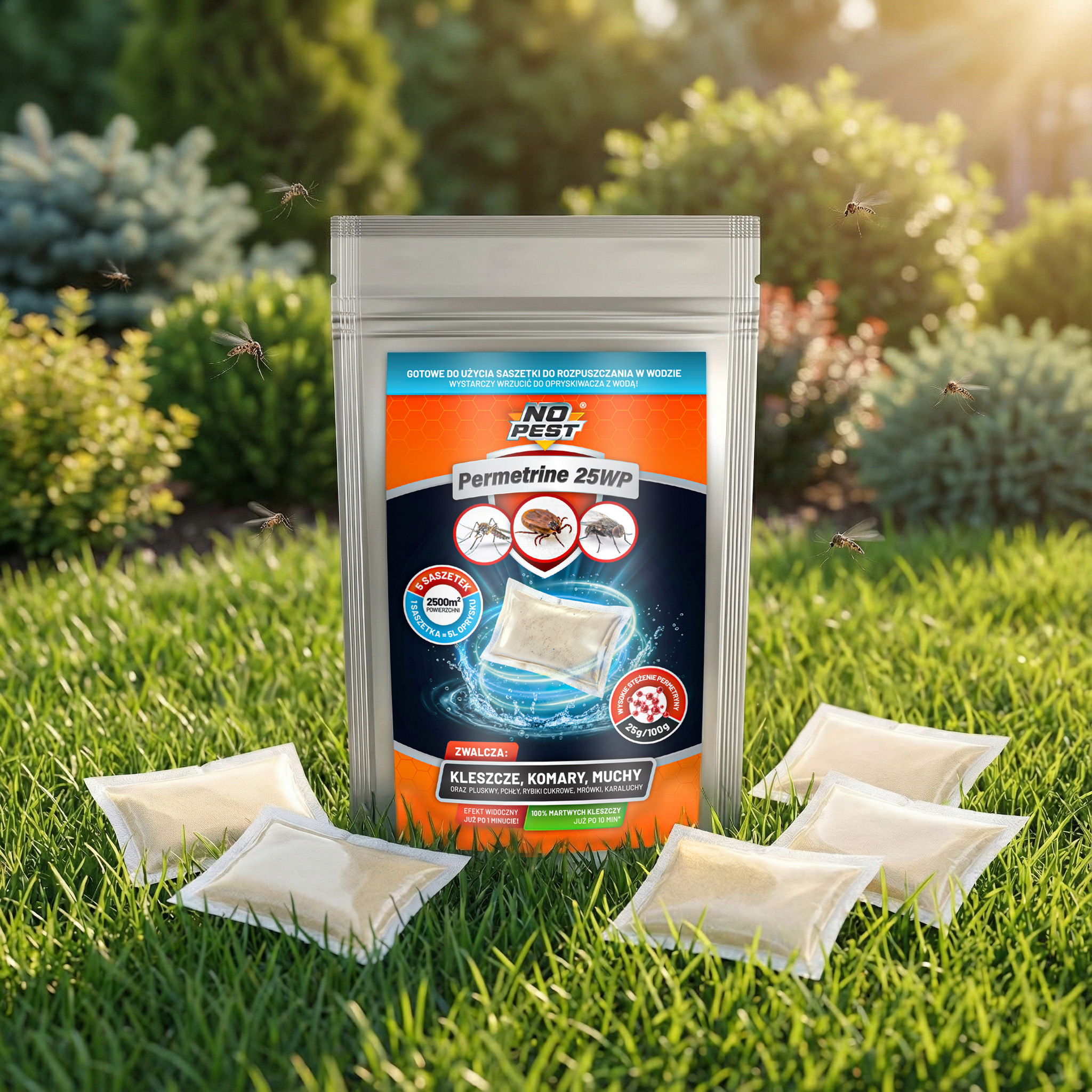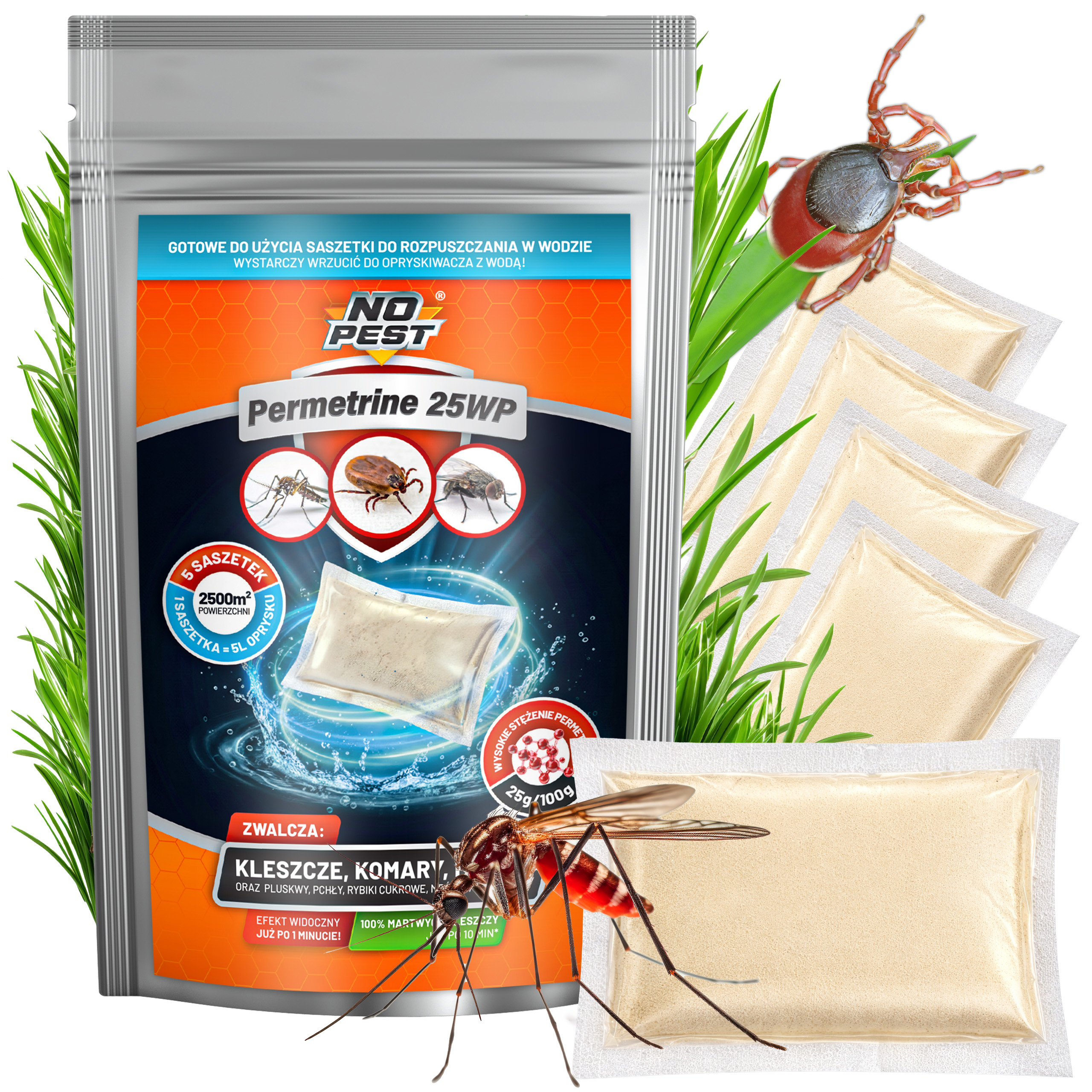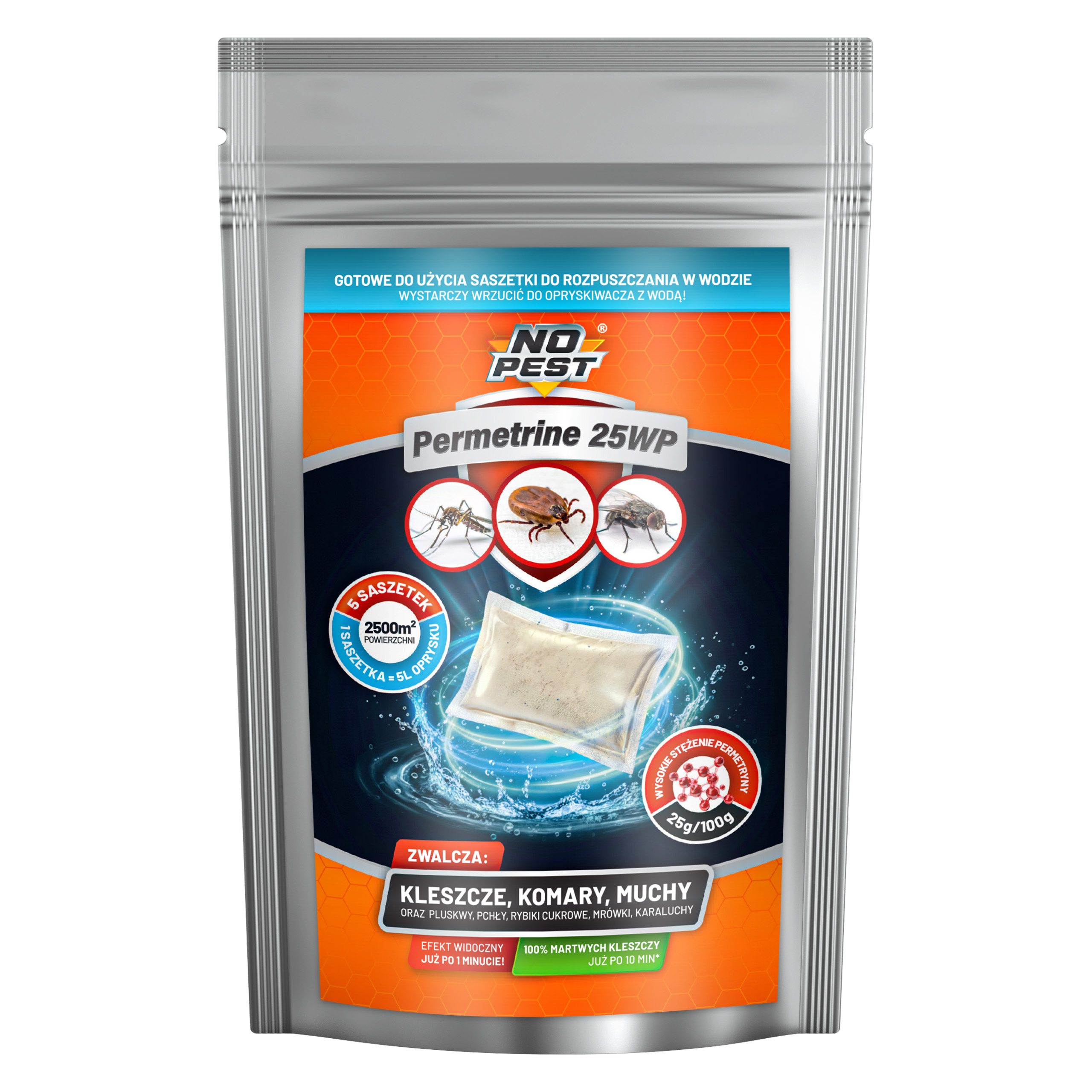 Oprysk na kleszcze, komary i muchy Permetrine 25WP No Pest® saszetki wodorozpuszczalne 5x12,5 g.