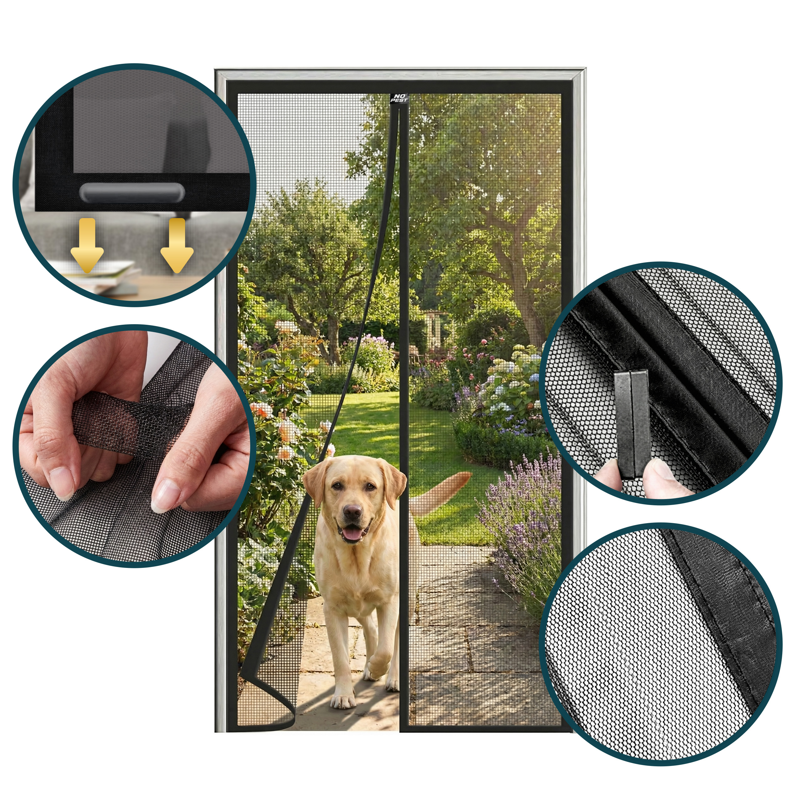 Moskitiera magnetyczna Silent Screen No Pest® przeznaczona jest do stosowania w otworach drzwiowych prowadzących na balkon, taras, patio, do ogrodu lub na werandę. Sprawdza się również w domkach letniskowych, altanach, przyczepach kempingowych oraz w pomieszczeniach gospodarczych. Uniwersalny rozmiar umożliwia dopasowanie do większości standardowych futryn drzwiowych.