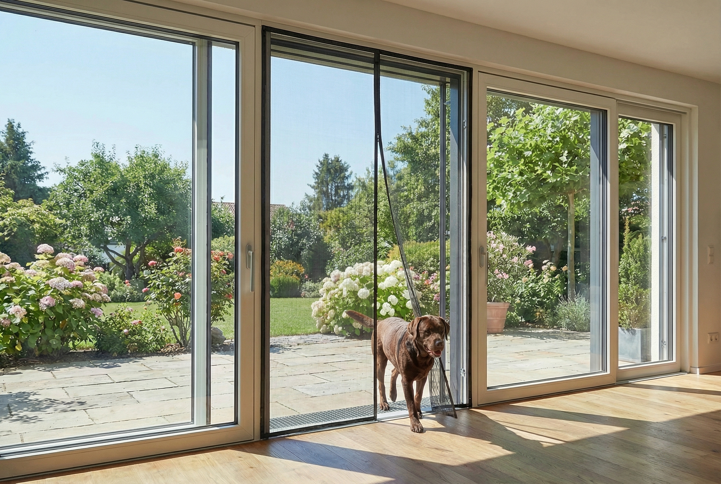 Moskitiera Silent Screen No Pest® łączy prostą konstrukcję z funkcjonalnymi rozwiązaniami, które ułatwiają codzienne korzystanie z drzwi balkonowych i tarasowych.