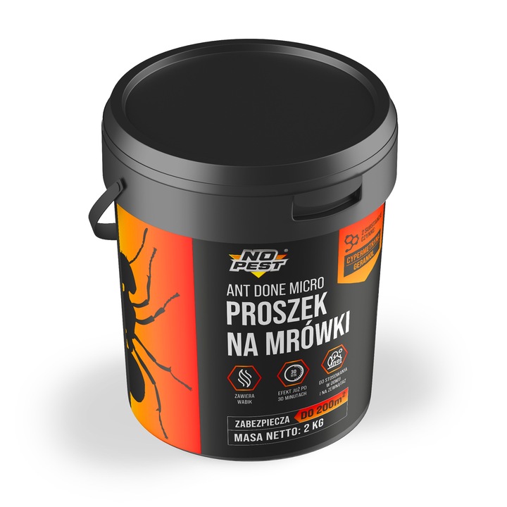 Ant Done Micro No Pest® 2 kg to preparat biobójczy w formie gotowego do użycia granulatu przeznaczony do zwalczania mrówek w obrębie budynków oraz w ich bezpośrednim otoczeniu. Produkt został opracowany z myślą o odpowiednim ograniczaniu populacji mrówek w miejscach ich bytowania i przemieszczania się. Granulowana forma ułatwia precyzyjne rozsypywanie preparatu i równomierne pokrycie powierzchni.