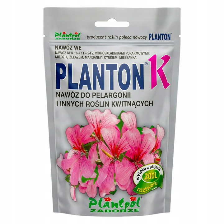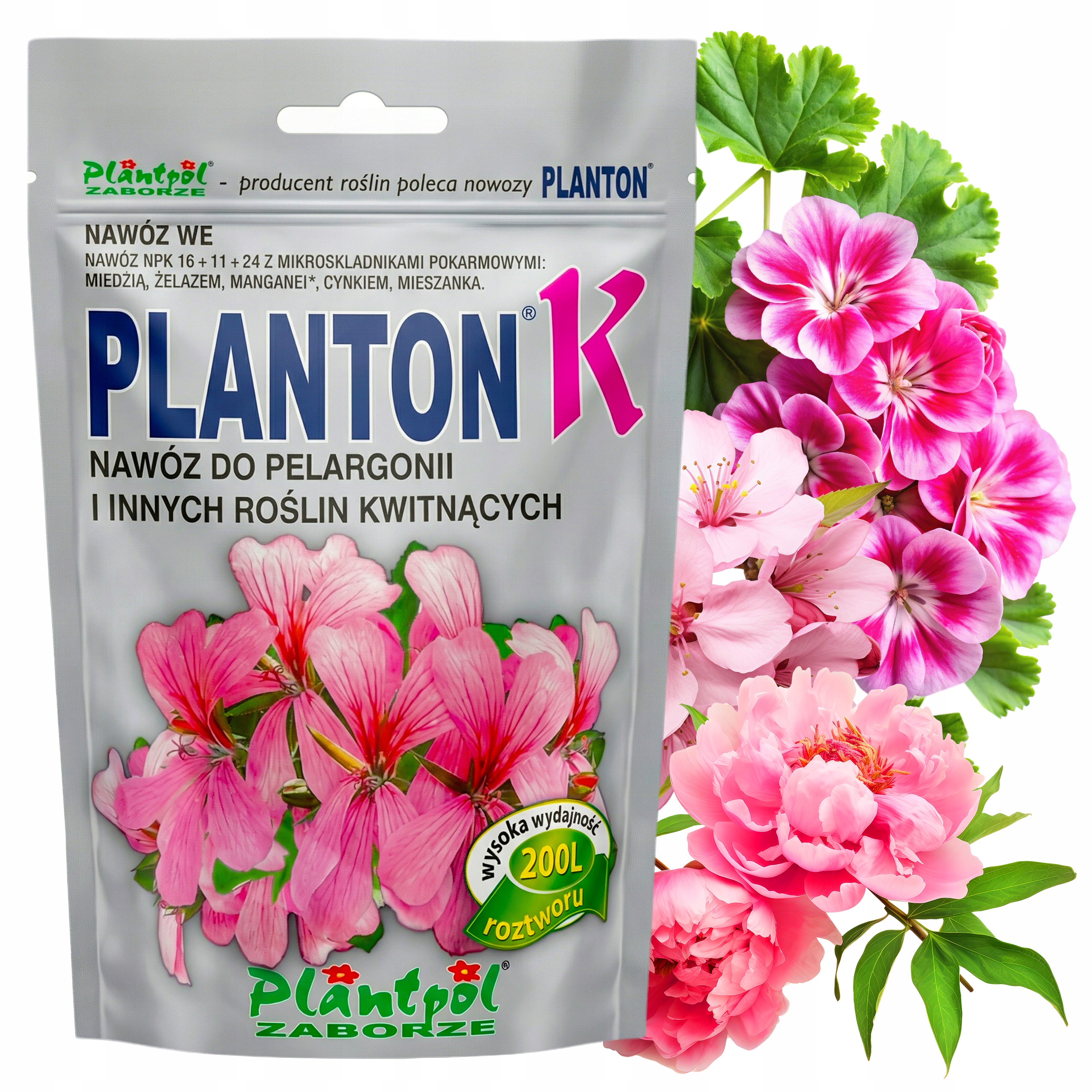 PLANTON K przeznaczony jest do nawożenia pelargonii oraz innych roślin kwitnących uprawianych w pojemnikach, ogrodach i na balkonach. Może być stosowany w donicach, skrzynkach balkonowych, kwietnikach oraz na rabatach ogrodowych, a także w uprawie pod osłonami.