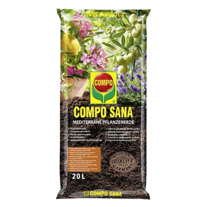 ZIEMIA DO ROŚLIN ŚRÓDZIEMNOMORSKICH PODŁOŻE Z NAWOZEM COMPO SANA 20L – podłoże do sadzenia i przesadzania roślin śródziemnomorskich