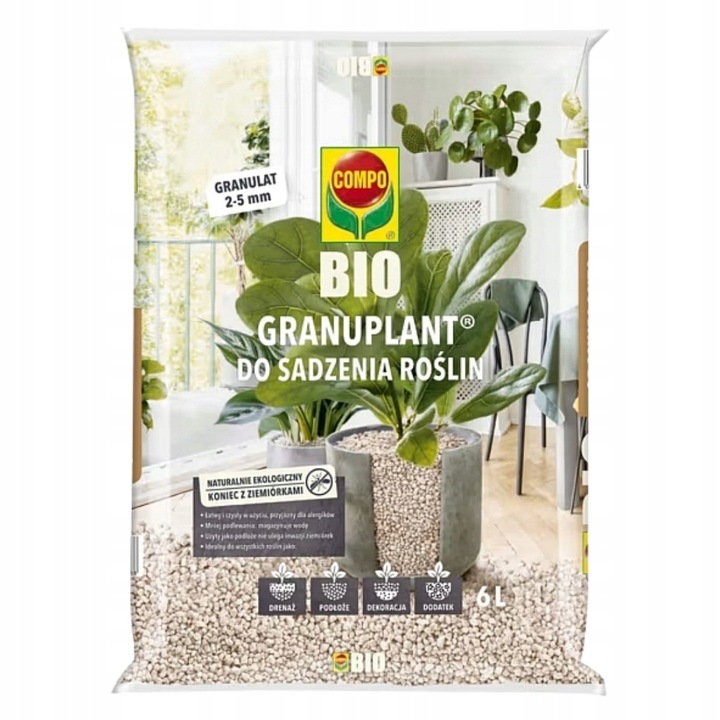 BIO GRANUPLANT DO SADZENIA ROŚLIN - GRANULAT NA BAZIE PUMEKSU 2-5 MM COMPO 6L DO PODŁOŻY OGRODNICZYCH I DRENAŻU
