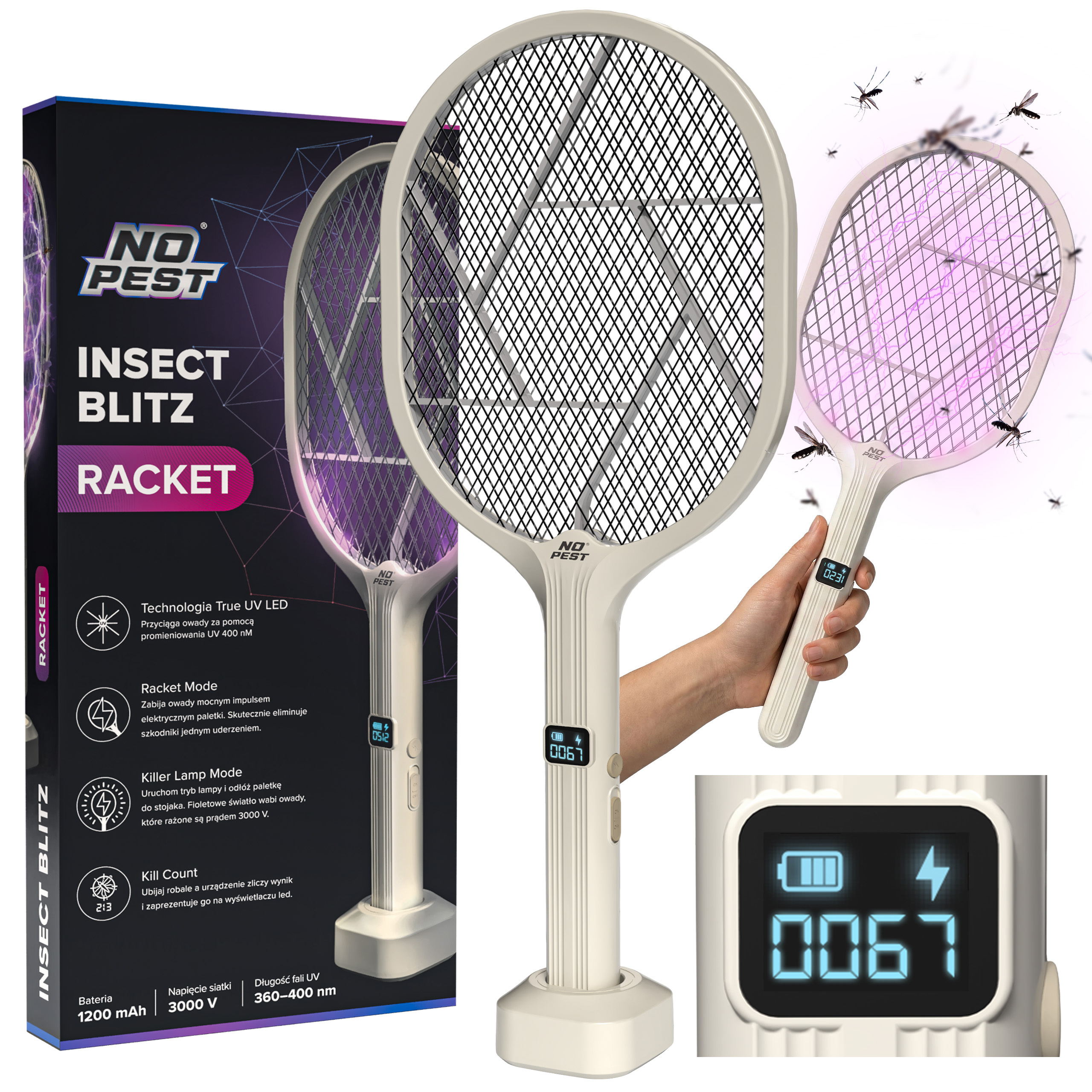 ✔️ Kill Count - wbudowany licznik zabitych owadów pokazuje na wyświetlaczu liczbę owadów, które weszły w kontakt z siatką elektryczną.