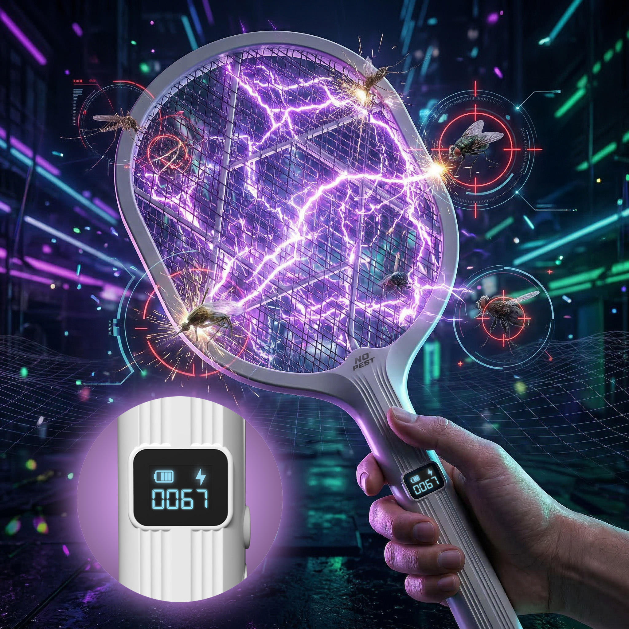 Licznik Twoich sukcesów (Kill Count): Insect Blitz Racket No Pest® wyposażona jest w licznik Kill Count, który wyświetla na ekranie liczbę trafionych owadów. Każde ofiara zwiększa Twój wynik, dzięki czemu możesz śledzić swoje osiągnięcia. Traktuj to jak małe wyzwanie – bij własne rekordy i zobacz, jak szybko rośnie Twój Kill Count.