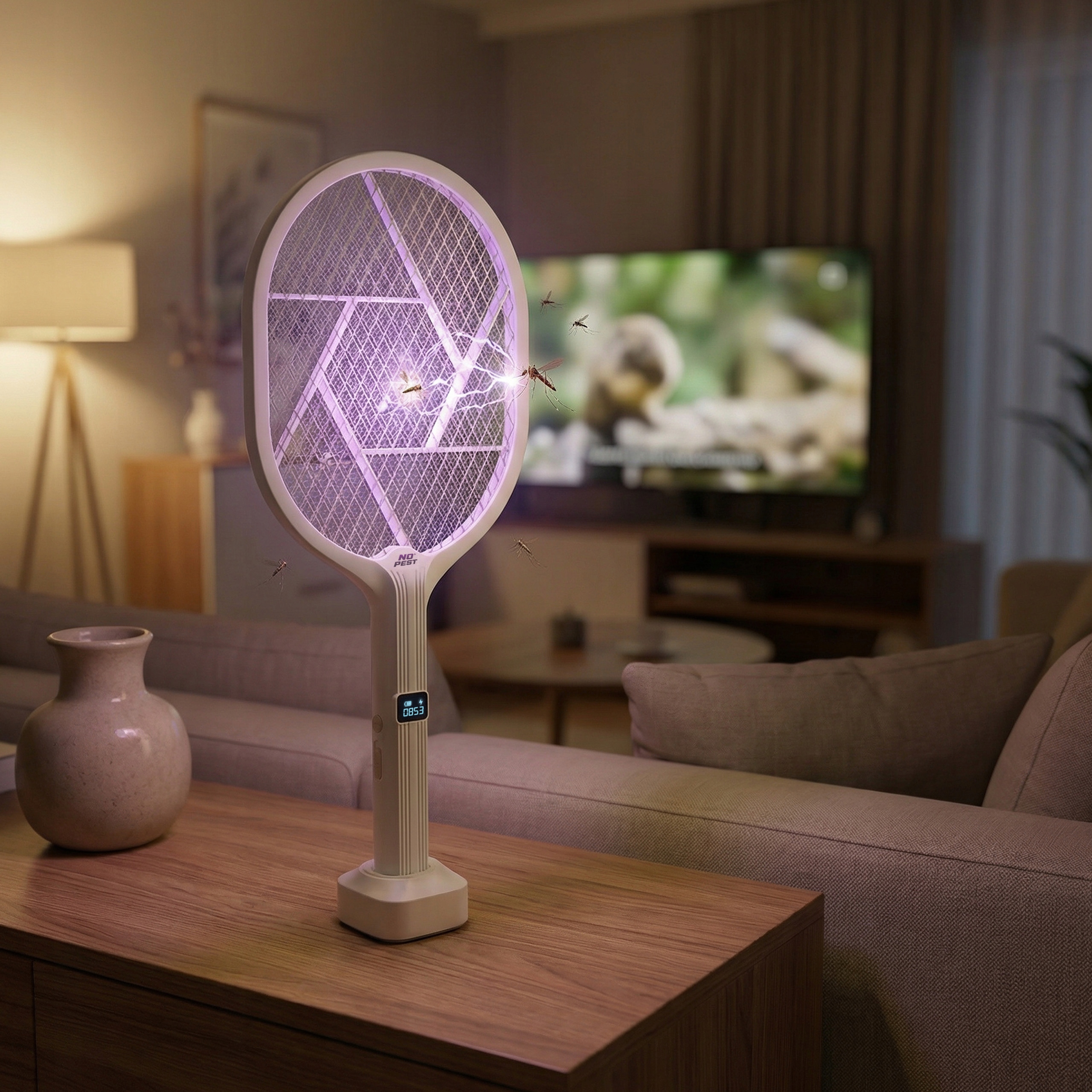 Dzięki zintegrowanemu wyświetlaczowi LED, korzystanie z Insect Blitz Racket No Pest® staje się jeszcze prostsze i bardziej intuicyjne: