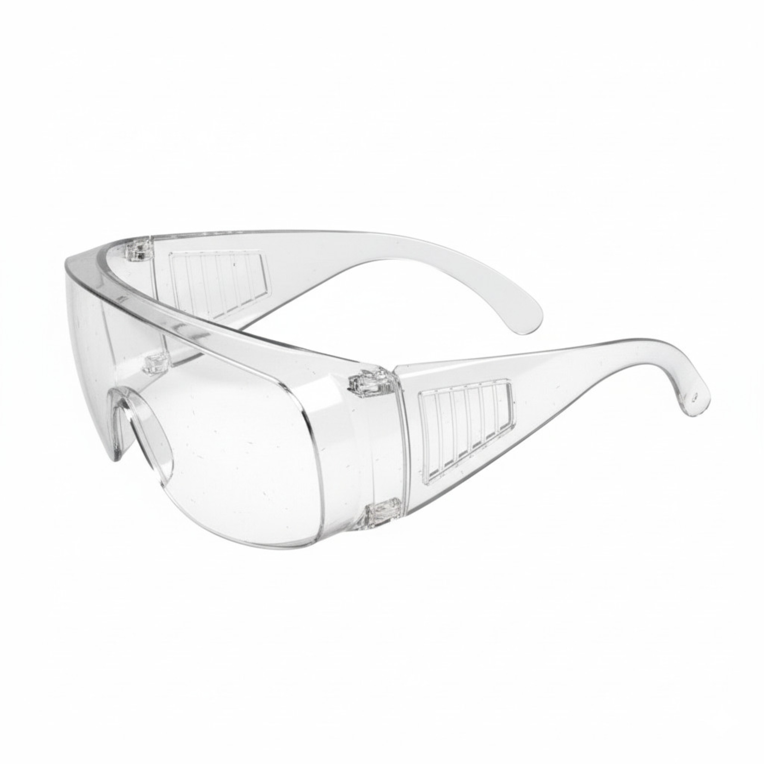 Model został wyposażony w bezbarwne soczewki wykonane z poliwęglanu, które zapewniają dobrą przejrzystość oraz komfort widzenia podczas wykonywania precyzyjnych czynności. Dzięki zastosowaniu klasy optycznej 1 okulary mogą być używane przez dłuższy czas, także podczas pracy wymagającej dokładnej obserwacji detali. Konstrukcja okularów została zaprojektowana tak, aby osłaniać oczy nie tylko z przodu, ale również z boków. Szerokie ramiona zwiększają zakres osłony i ograniczają możliwość dostania się drobnych cząstek do oczu z bocznego kierunku. Takie rozwiązanie sprawdza się szczególnie podczas pracy z narzędziami mechanicznymi, elektronarzędziami czy maszynami warsztatowymi.