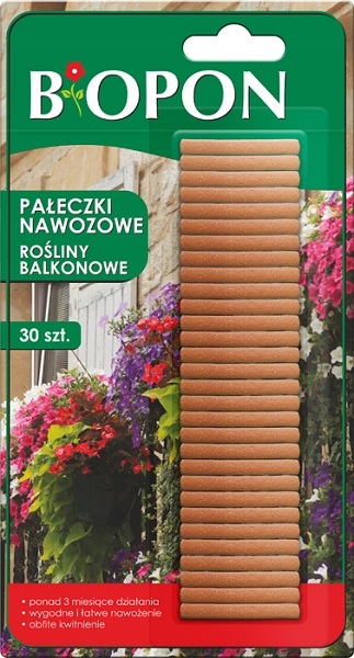 Biopon Pałeczki nawozowe do roślin balkonowych 30 sztuk - nawóz w formie pałeczek do roślin balkonowych i pokojowych