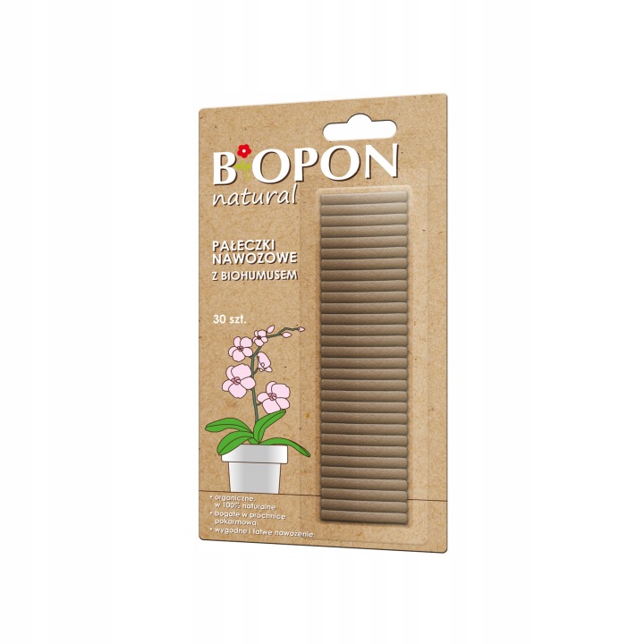 Pałeczki nawozowe z biohumusem Biopon BROS 30 szt. do roślin domowych i balkonowych.