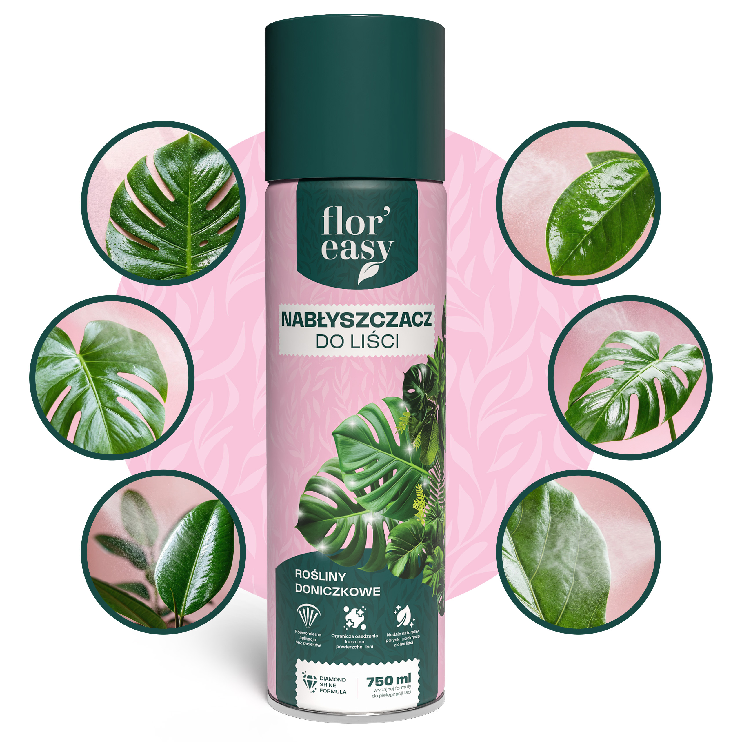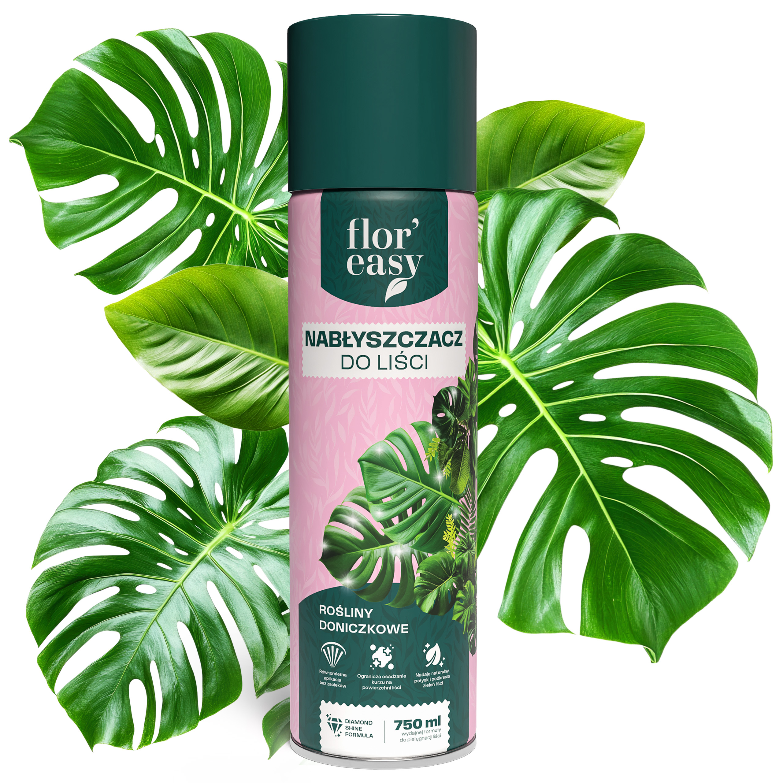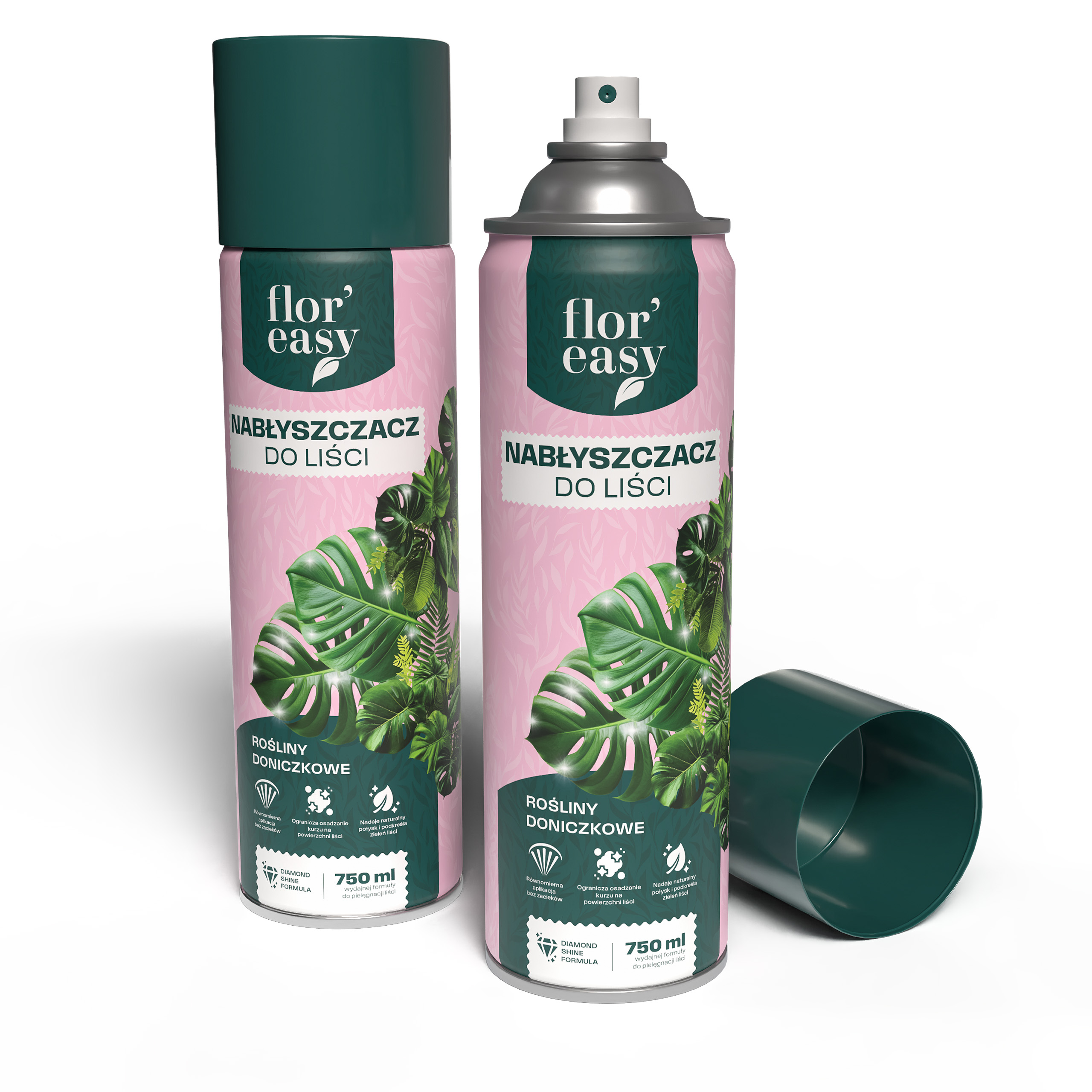Nabłyszczacz do liści flor'easy® 750 ml to preparat przeznaczony do pielęgnacji roślin doniczkowych, który wspiera utrzymanie ich estetycznego wyglądu. Produkt w formie aerozolu umożliwia równomierne pokrycie powierzchni liści cienką warstwą, bez konieczności przecierania.