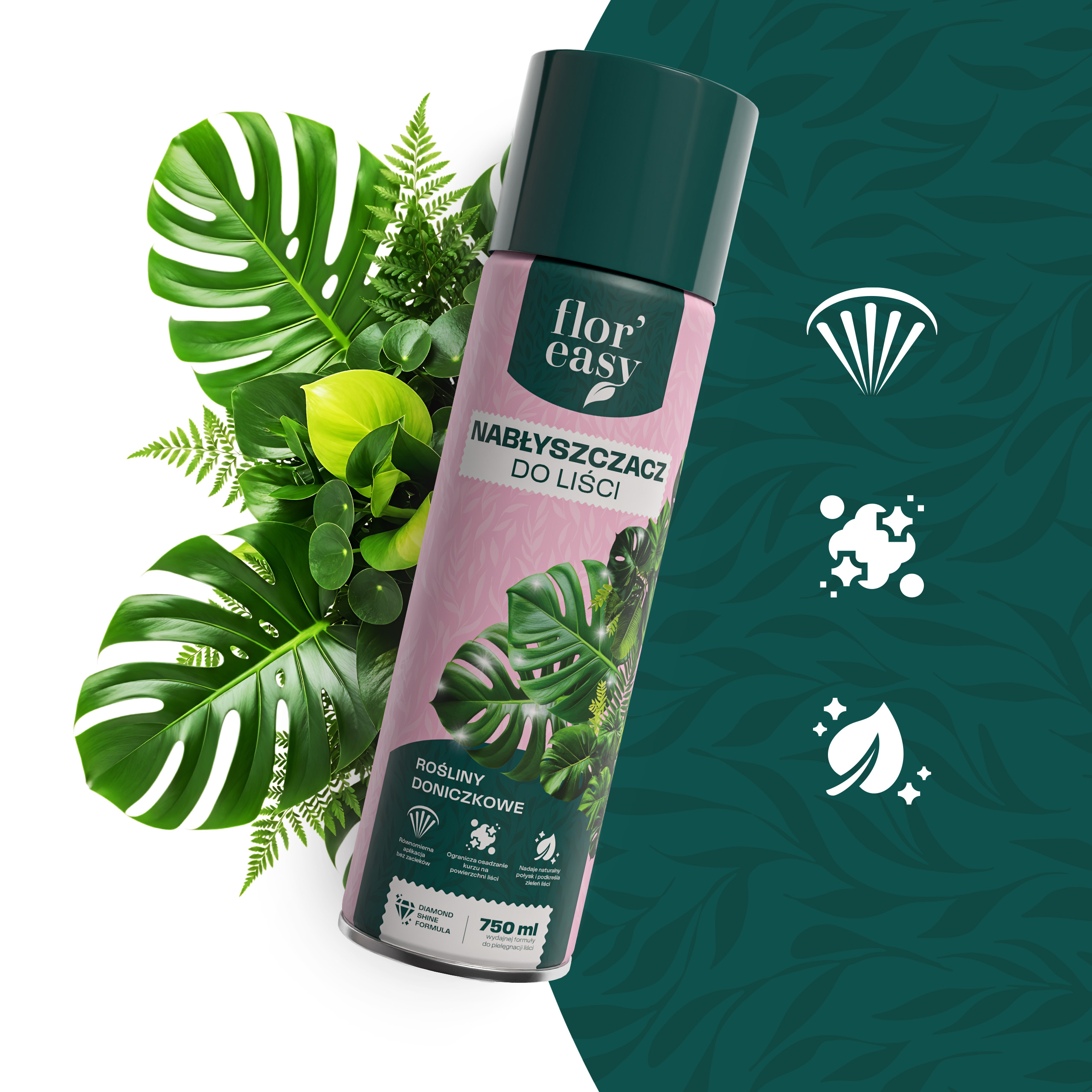 Preparat do roślin doniczkowych flor'easy® 750 ml to rozwiązanie dla osób, które chcą zadbać o wygląd liści bez czasochłonnych zabiegów pielęgnacyjnych. Dzięki formule Diamond Shine produkt nadaje liściom delikatny połysk i wspiera utrzymanie ich świeżego wyglądu.