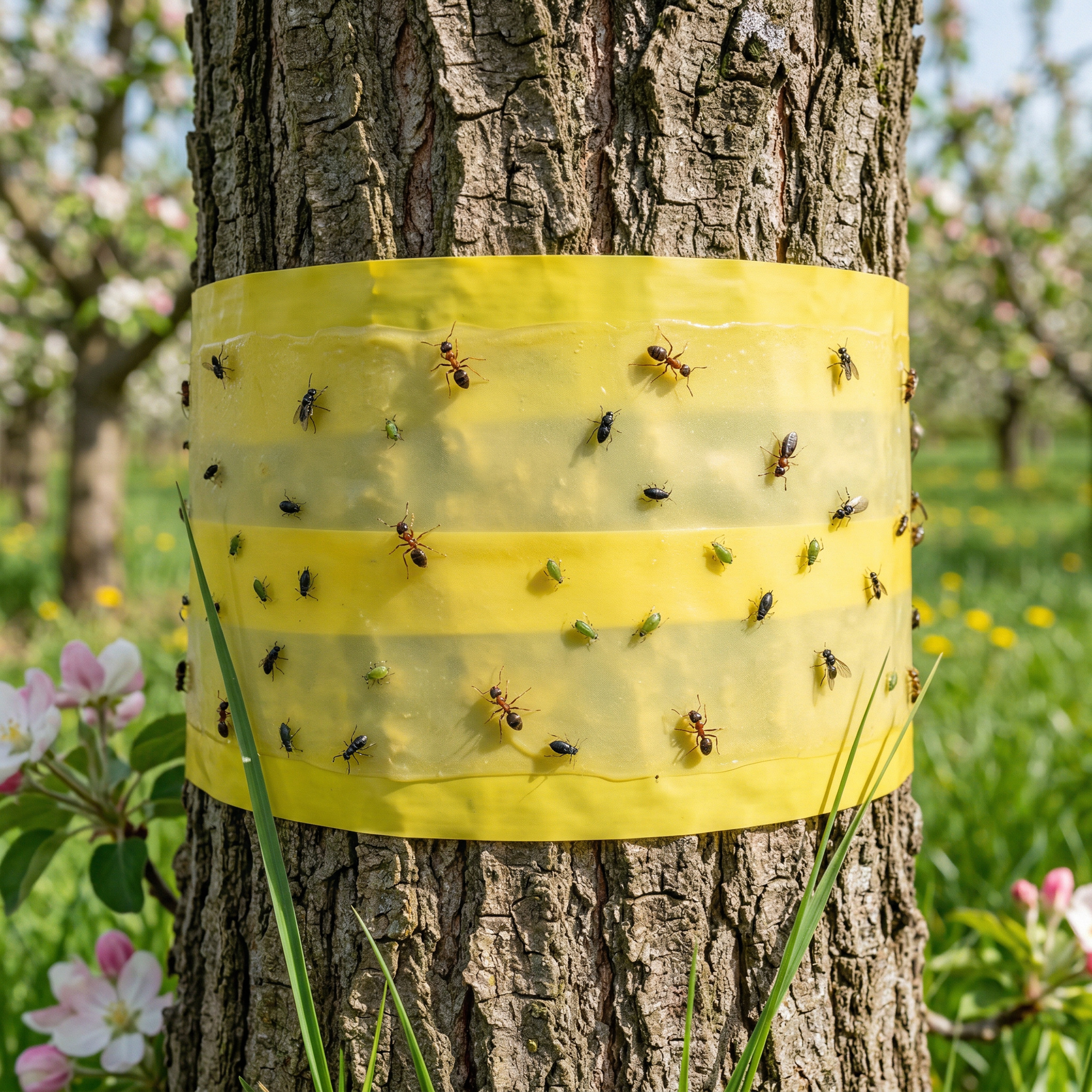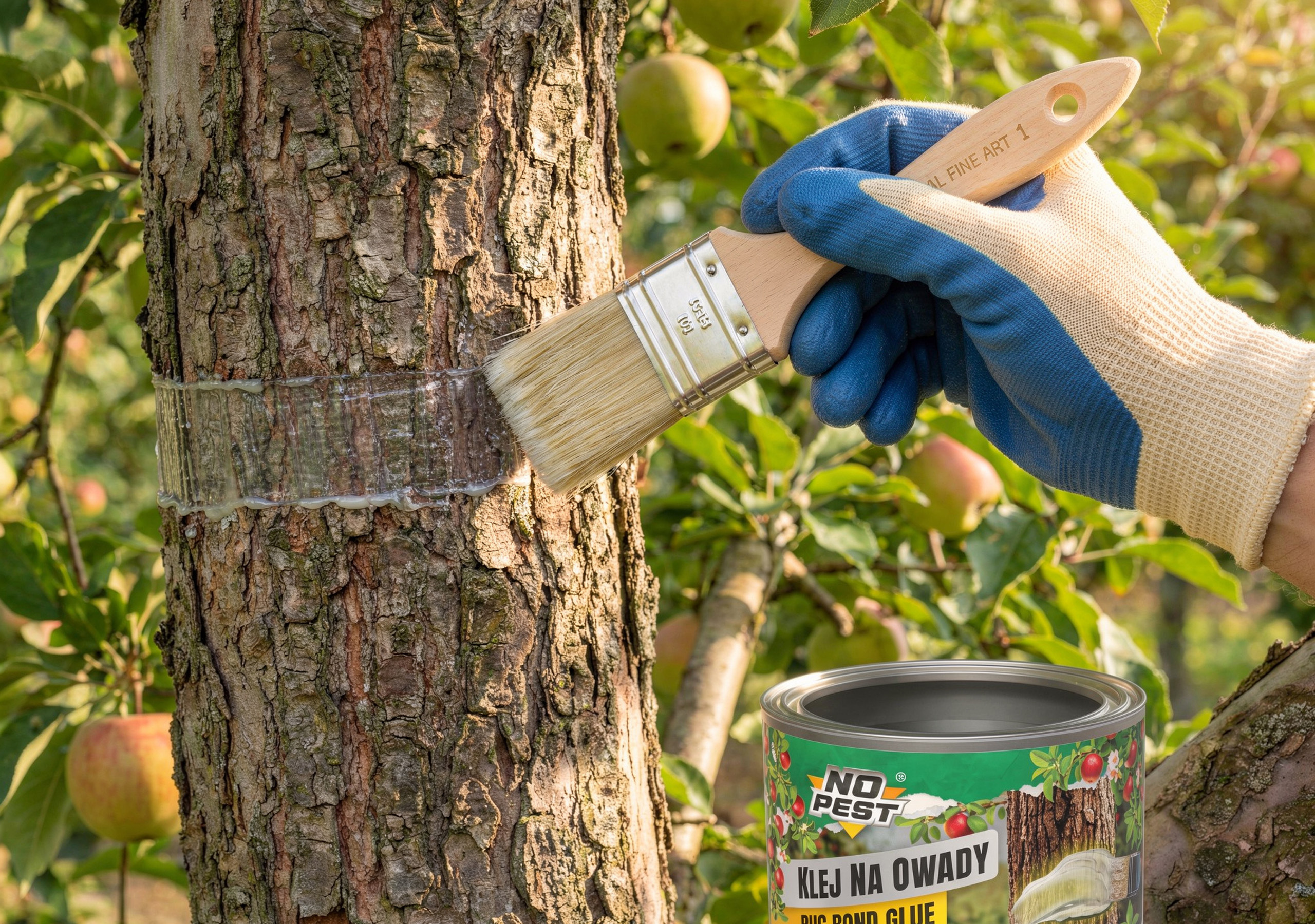 ● W przypadku drzew nanieś pas kleju o szerokości około 10 cm wokół pnia na wysokości około 1,5 m
