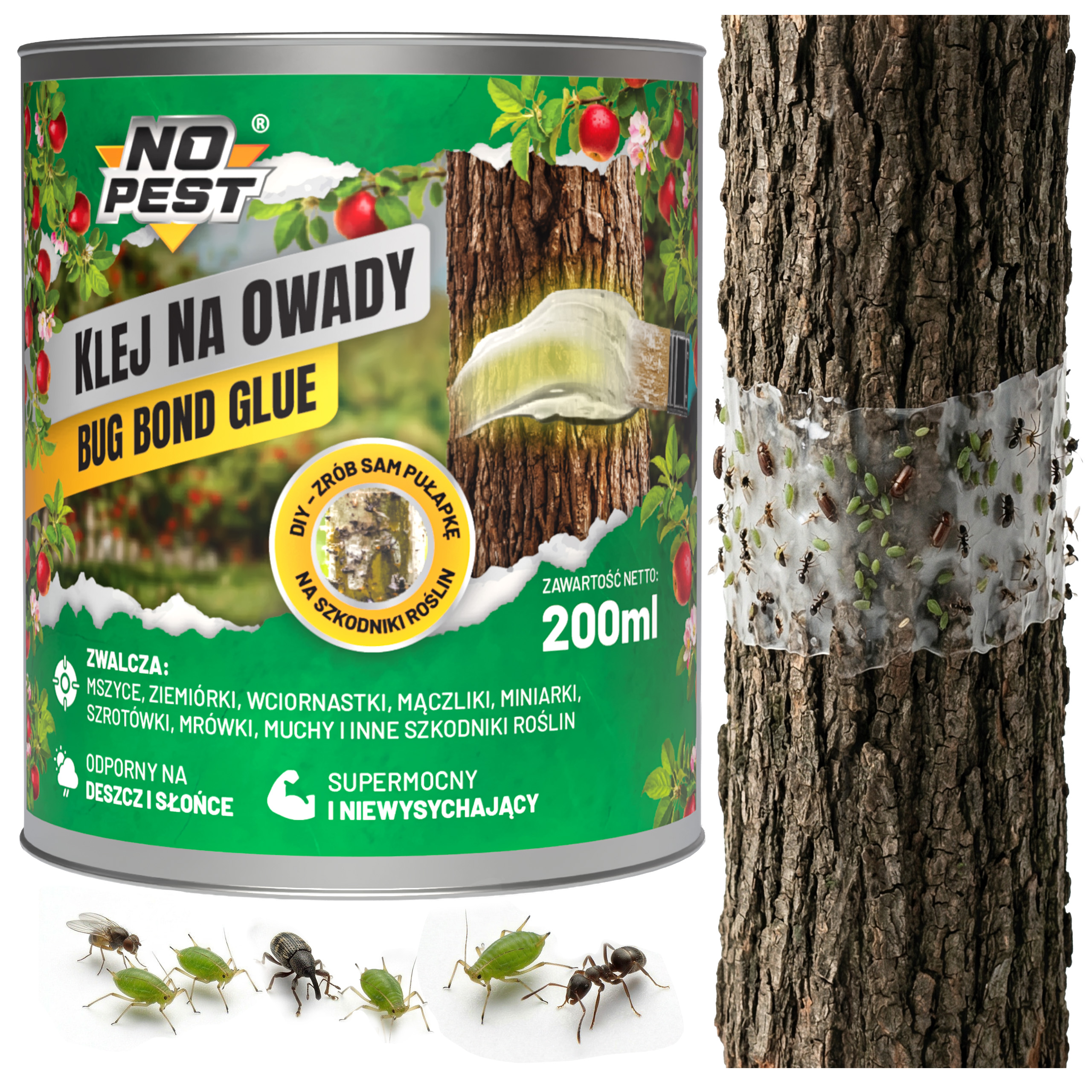 Klej na owady Bug Bond Glue No Pest® 200 ml - gotowy do użycia klej do samodzielnego tworzenia pułapek lepowych na owady i szkodniki roślin