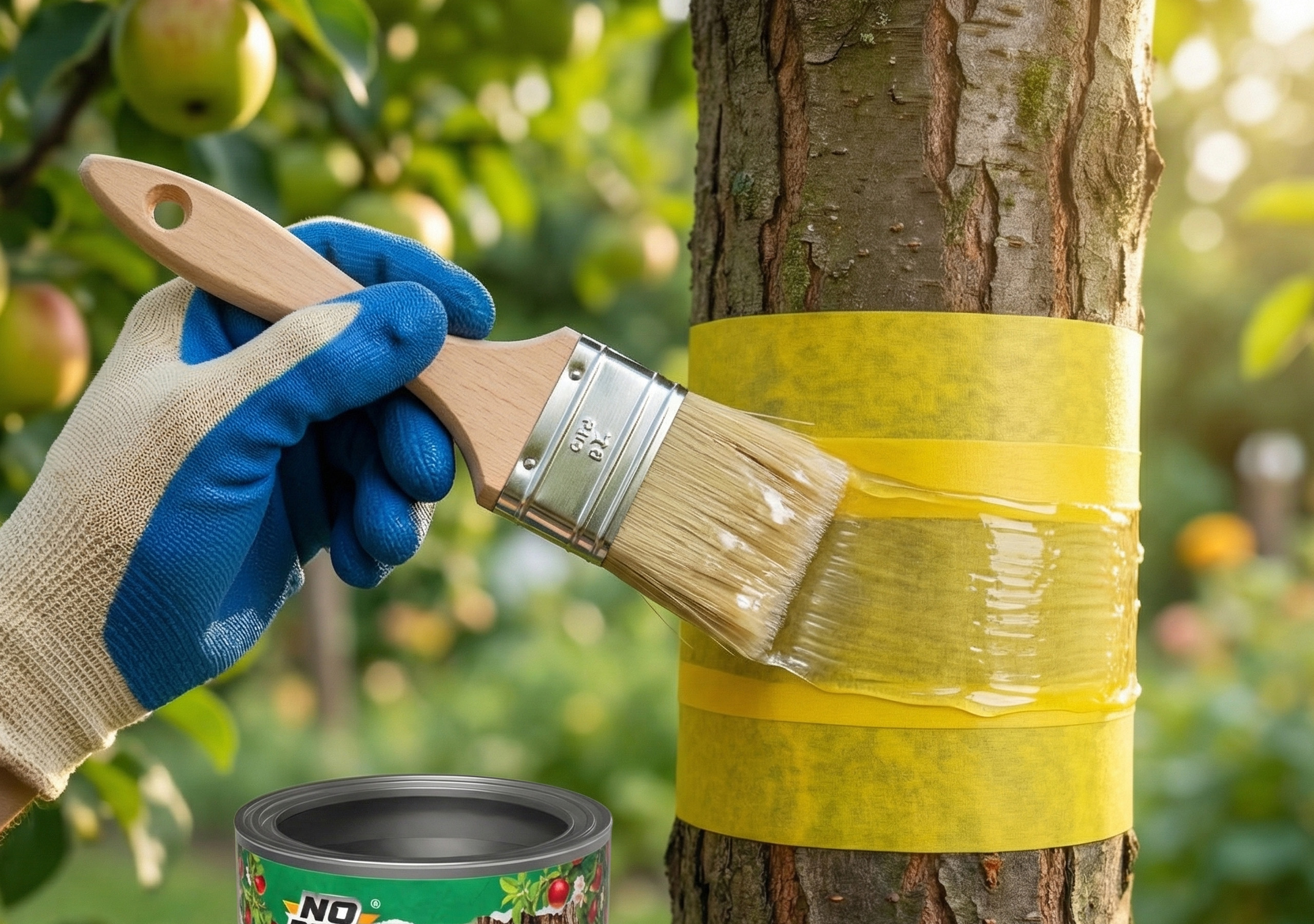 ● W przypadku drzew nanieś pas kleju o szerokości około 10 cm wokół pnia na wysokości około 1,5 m