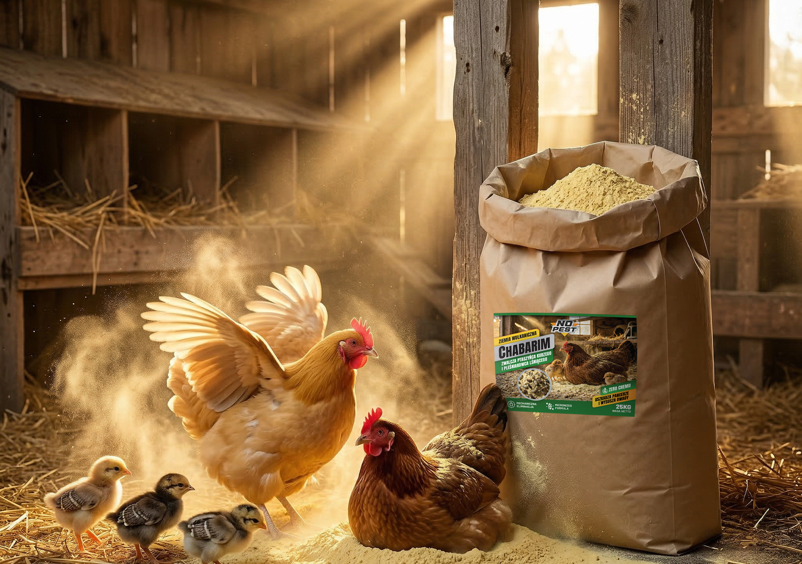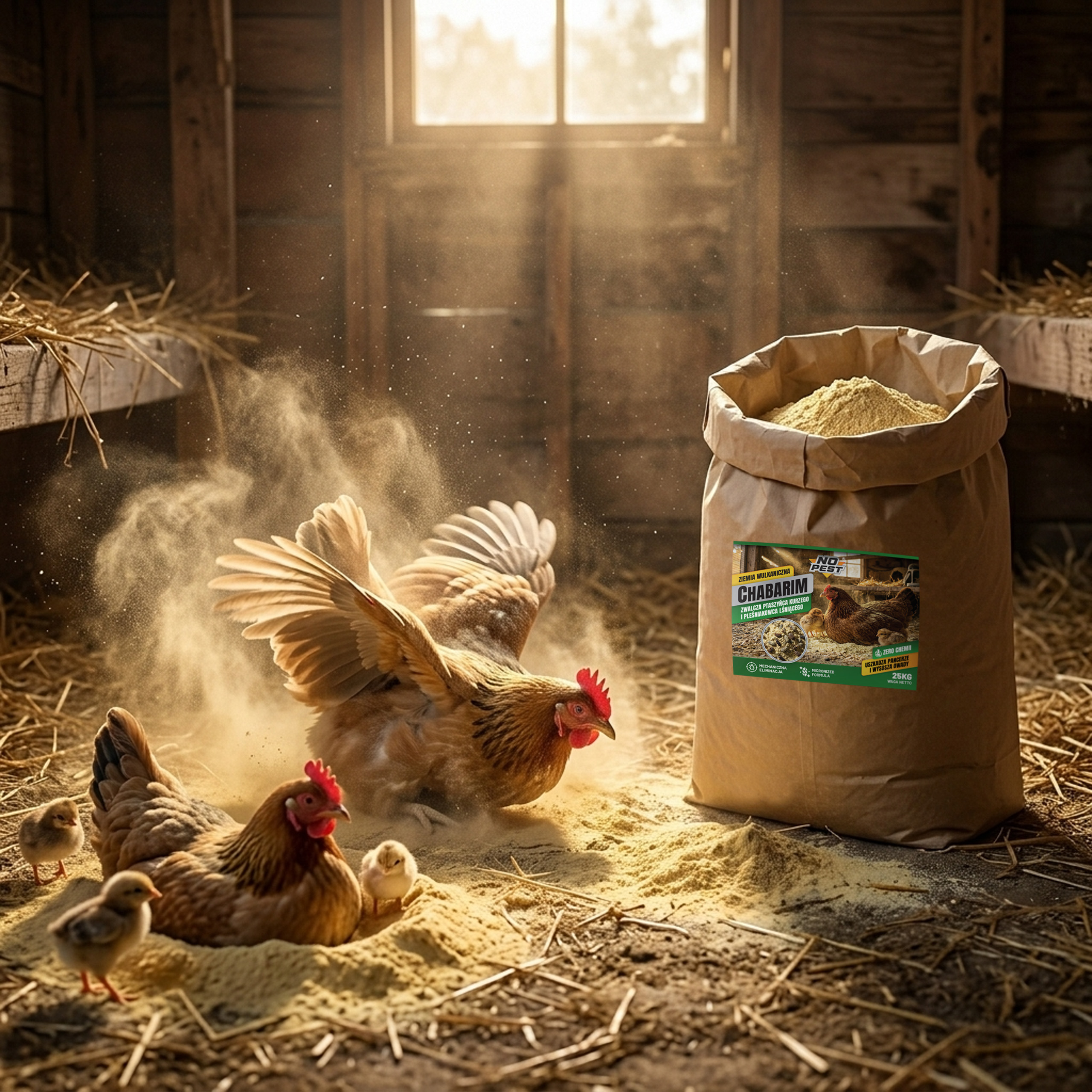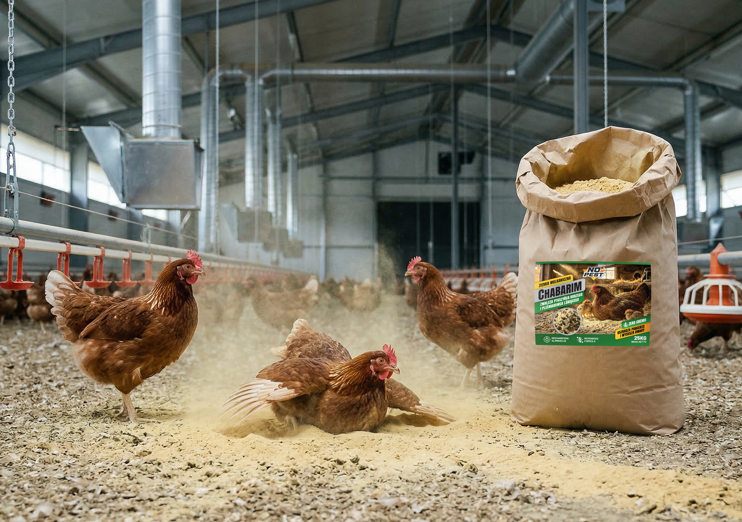 Ziemia wulkaniczna Chabarim No Pest® przeznaczona jest do stosowania w kurnikach, gospodarstwach oraz magazynach. Sprawdza się w ograniczaniu obecności szkodników, takich jak ptaszyniec kurzy i pleśniakowiec lśniący, które często występują w obiektach hodowlanych. Produkt działa zarówno na larwy, jak i dorosłe osobniki, co pozwala ograniczyć ich rozwój.
