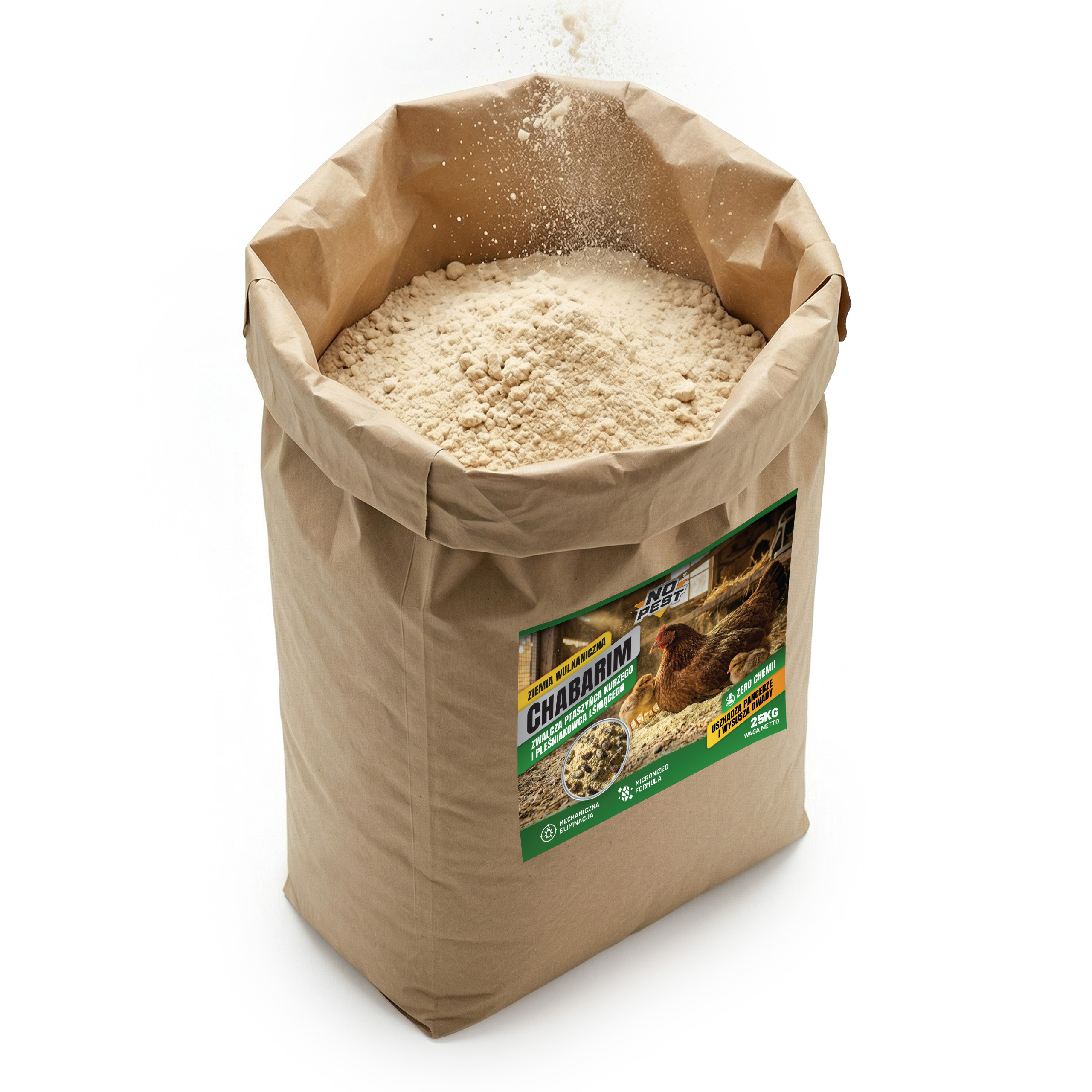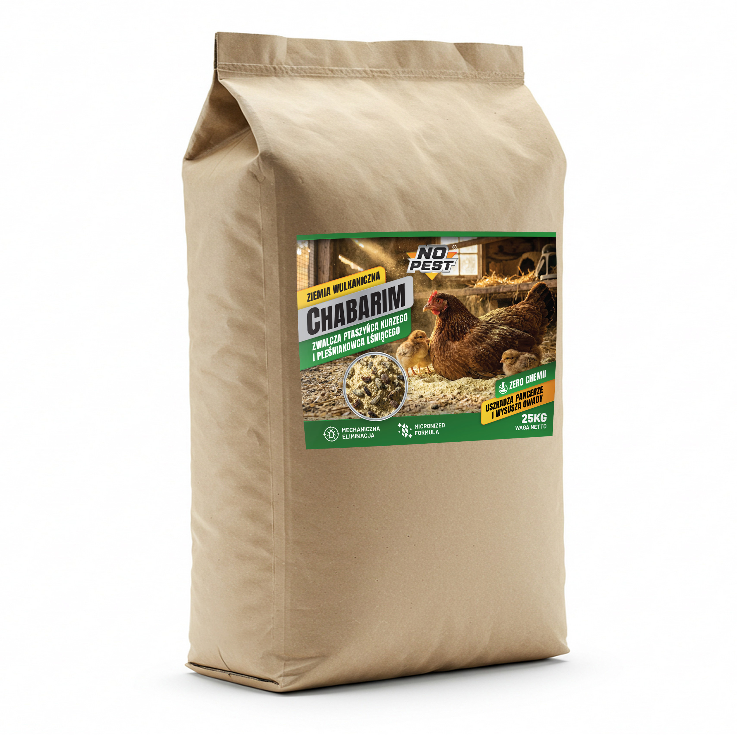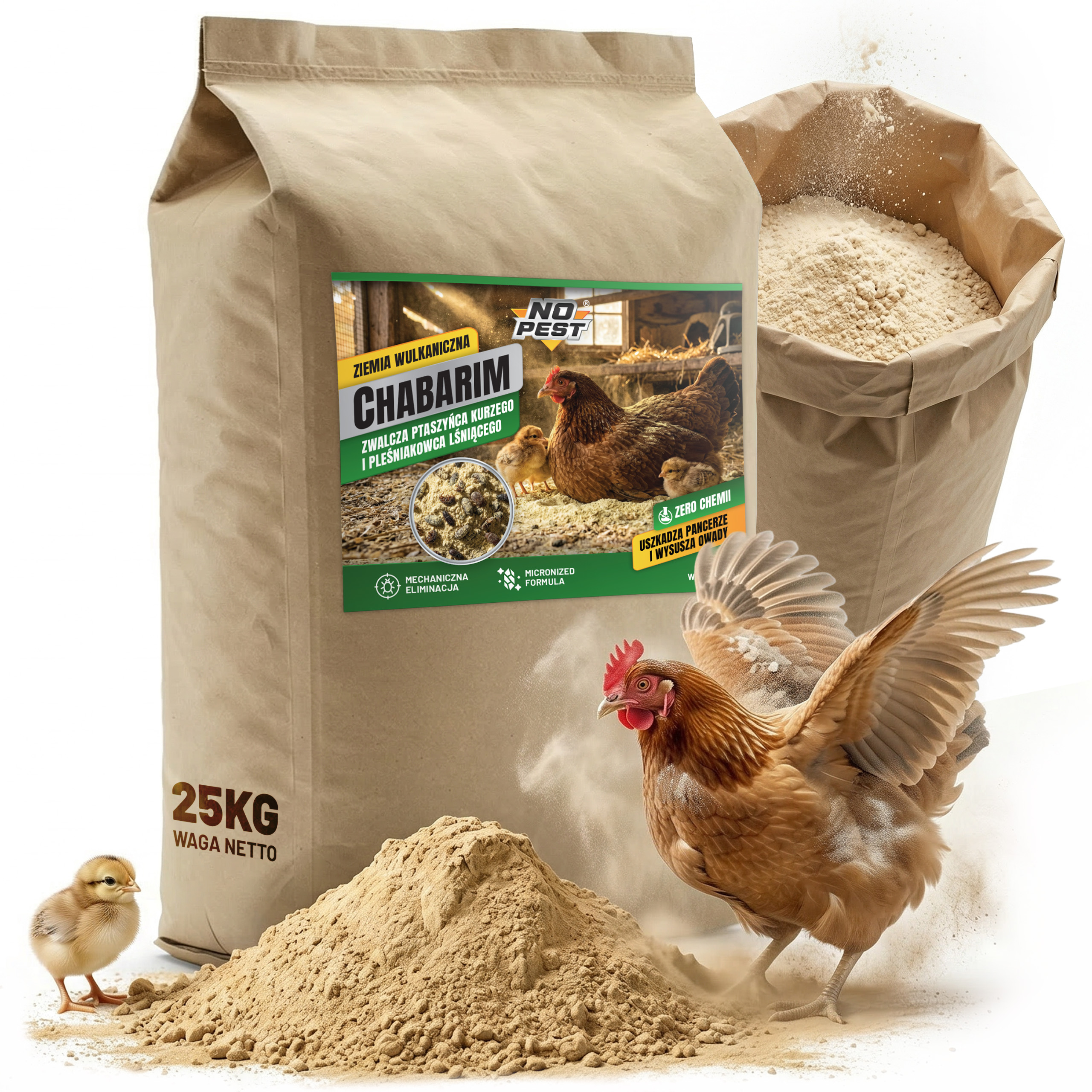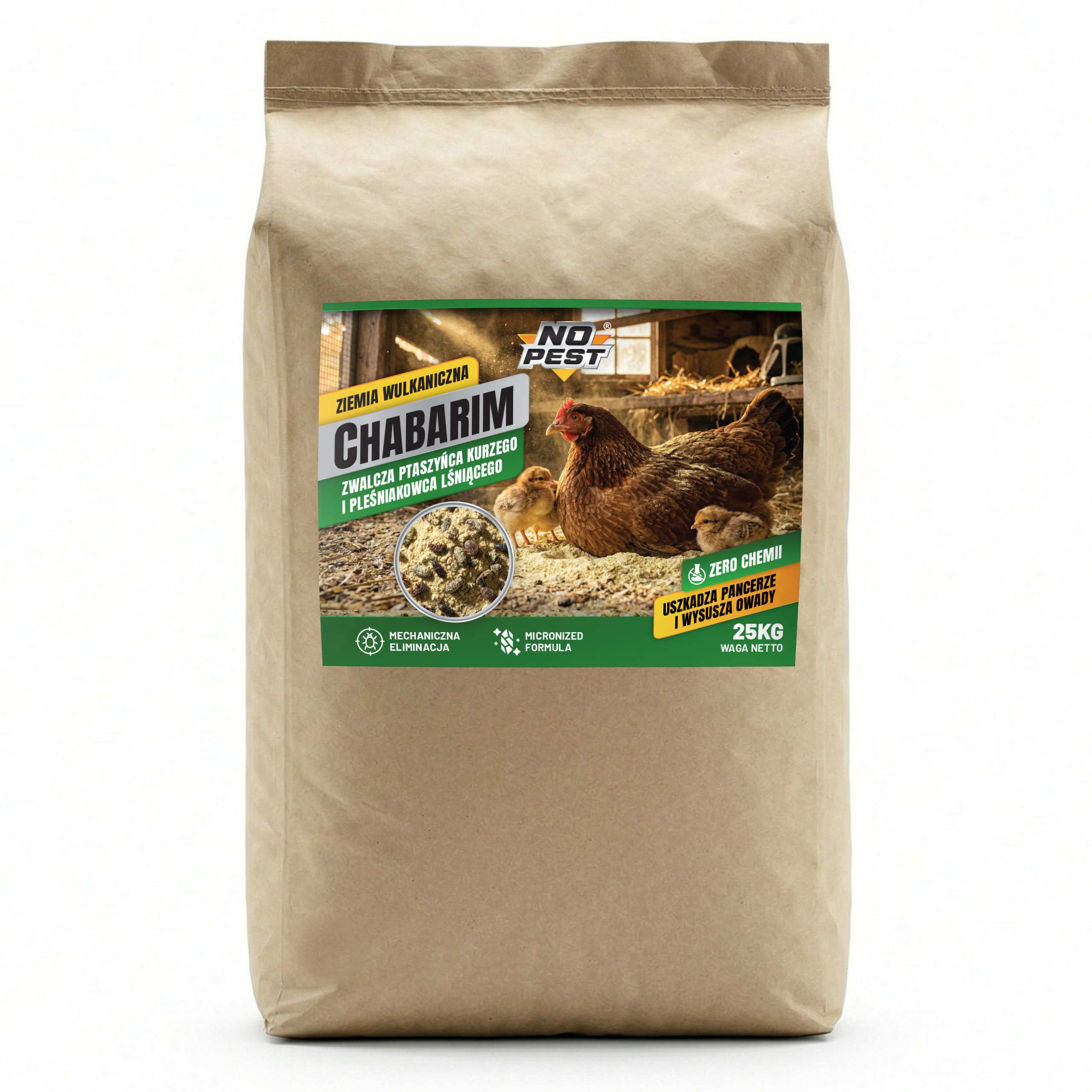 Proszek do zwalczania ptaszyńca kurzego i pleśniakowca lśniącego No Pest® to mineralny preparat w formie drobnego proszku przeznaczony do stosowania w przestrzeniach hodowlanych, magazynowych oraz użytkowych. Produkt służy do ograniczania obecności owadów pełzających i latających, w tym ptaszyńca kurzego oraz pleśniakowca lśniącego.