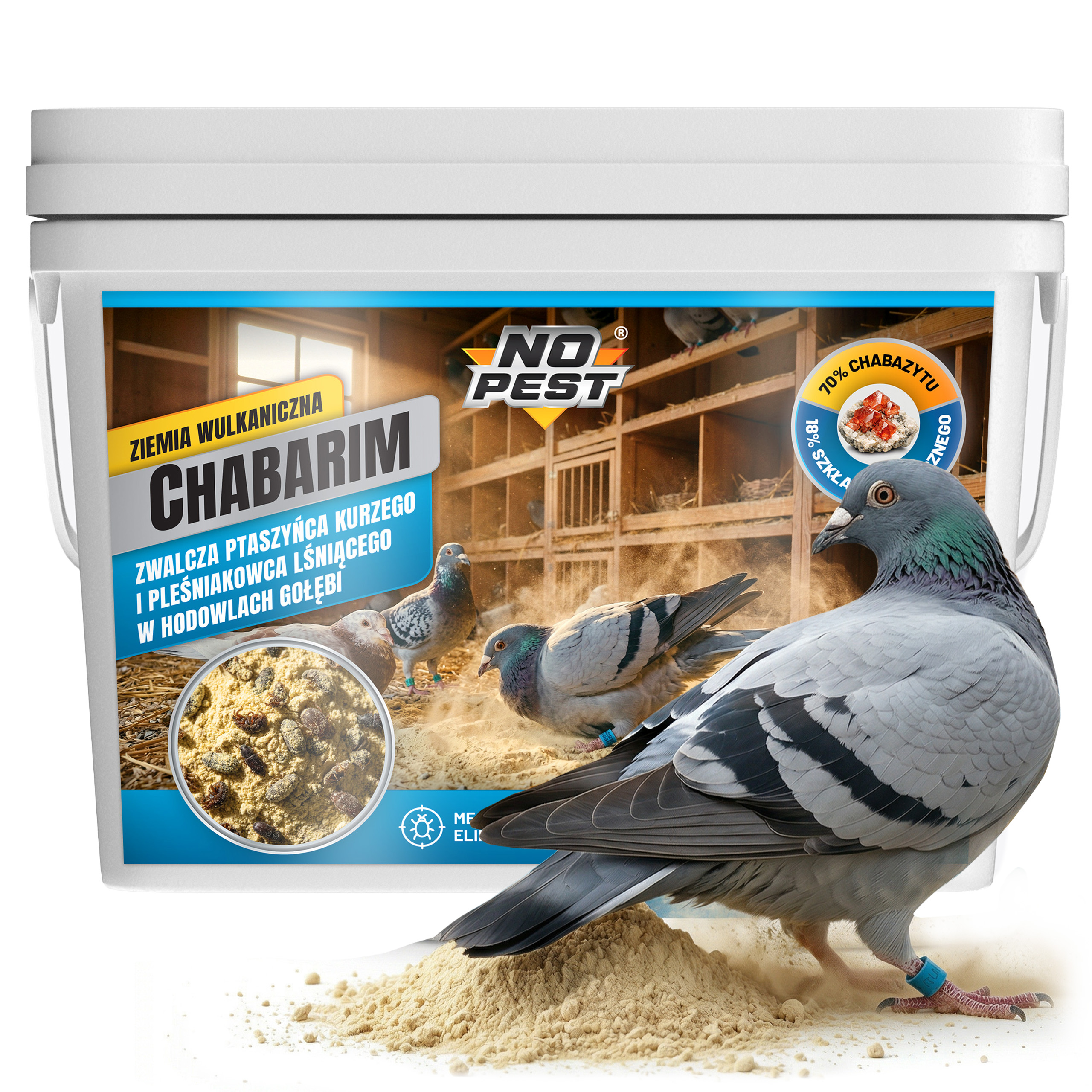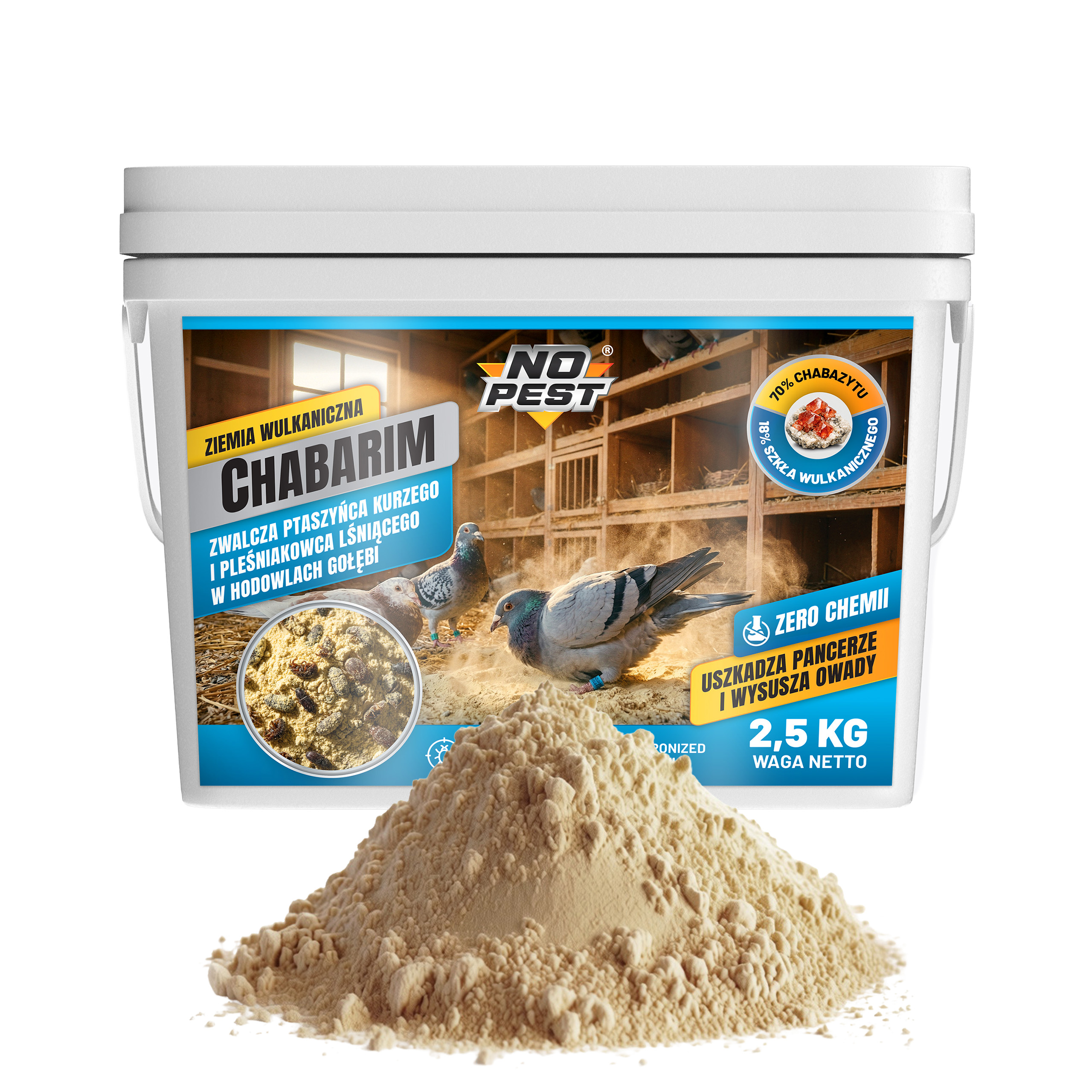 chabarim no pest, ziemia wulkaniczna na owady, proszek na ptaszyńca kurzego, środek na pleśniakowca lśniącego, proszek na owady do gołębnika, preparat mineralny na owady, chabazyt na owady, naturalny proszek na owady, środek na owady w magazynie, proszek na owady w hodowli, ziemia wulkaniczna do gołębnika