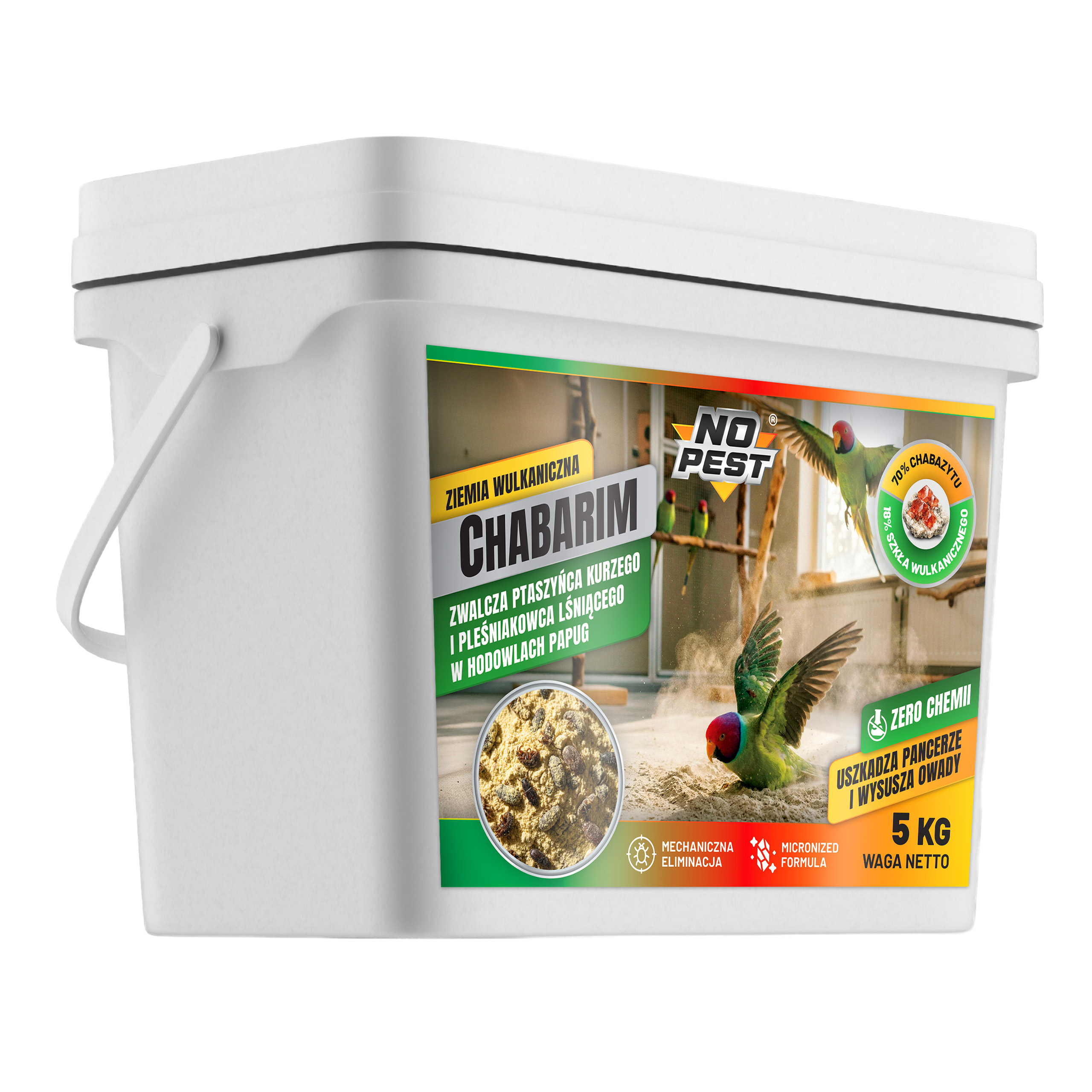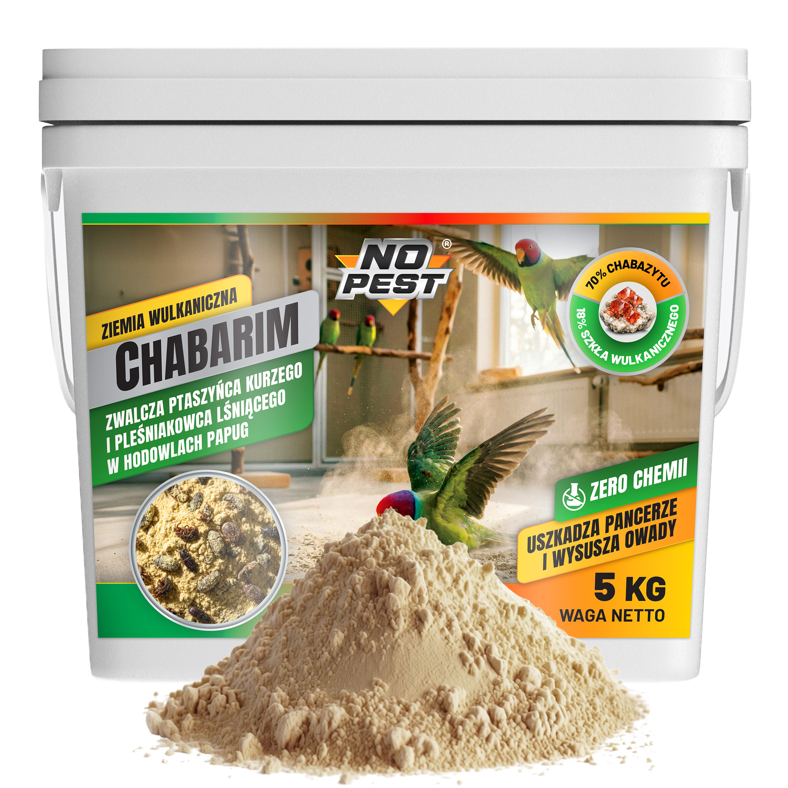 Ziemia wulkaniczna Chabarim No Pest® przeznaczona jest do stosowania w hodowlach papug, gospodarstwach oraz magazynach. Sprawdza się w ograniczaniu obecności szkodników, takich jak ptaszyniec kurzy i pleśniakowiec lśniący, które często występują w obiektach hodowlanych. Produkt działa zarówno na larwy, jak i dorosłe osobniki, co pozwala ograniczyć ich rozwój.