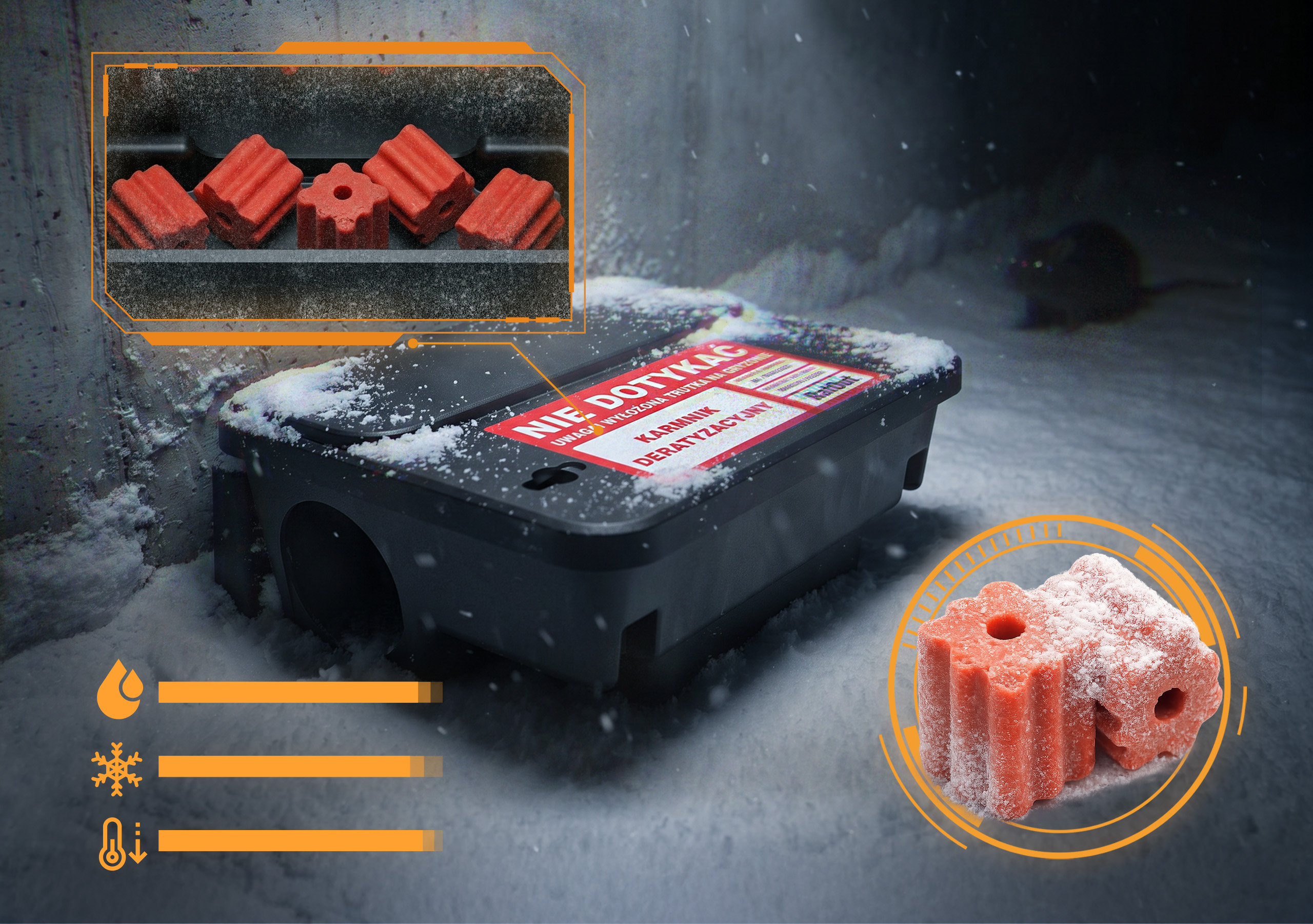 Kostka fluorescencyjna RatOut® została zaprojektowana do pracy tam, gdzie standardowe przynęty mogą tracić swoje właściwości.