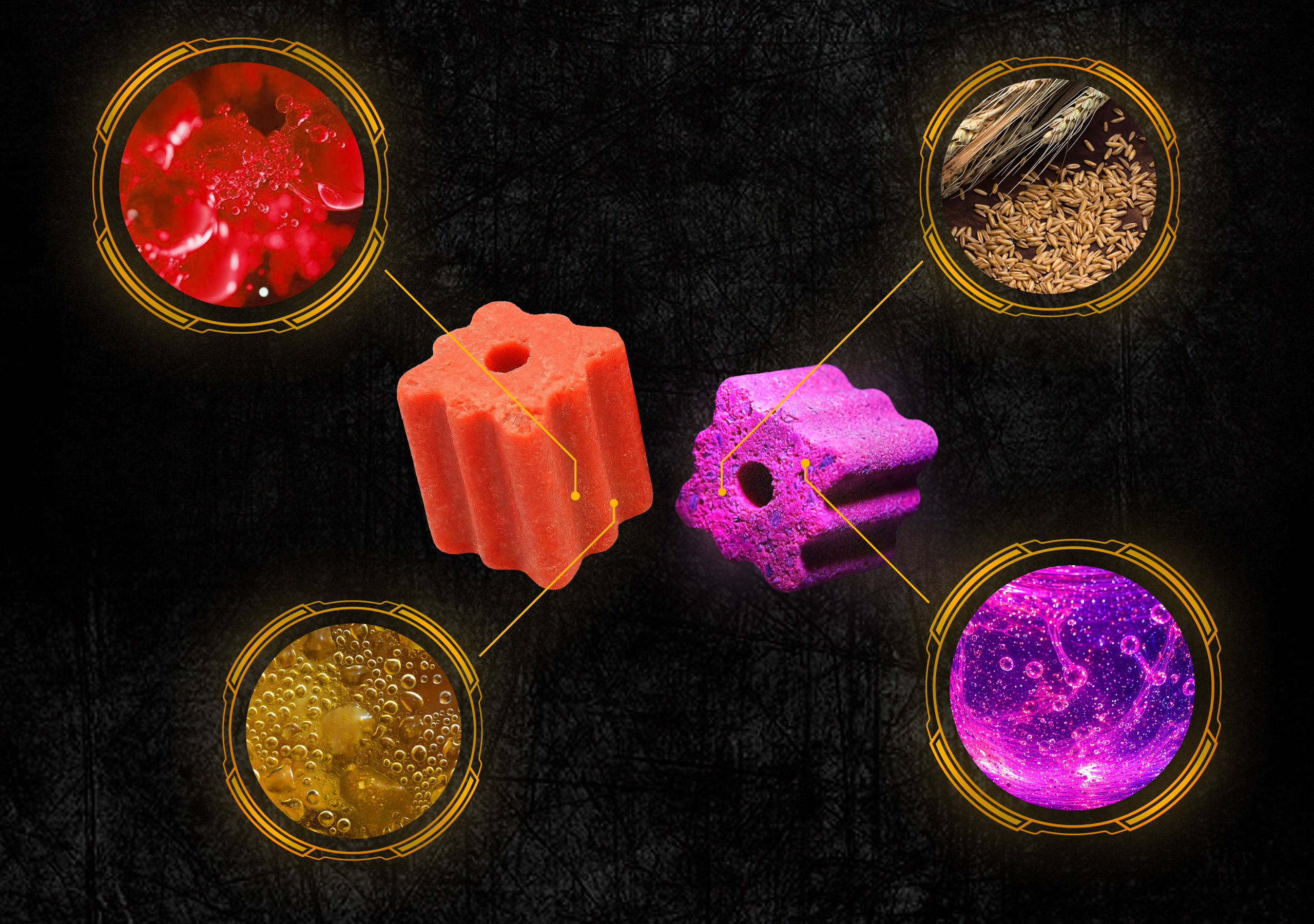 Prezentowane wizualizacje mają charakter poglądowy i służą przedstawieniu składu, właściwości oraz aromatu produktu. Rzeczywisty wygląd produktu, wynikający z zastosowanej technologii produkcji, może nieznacznie odbiegać od przedstawionego.